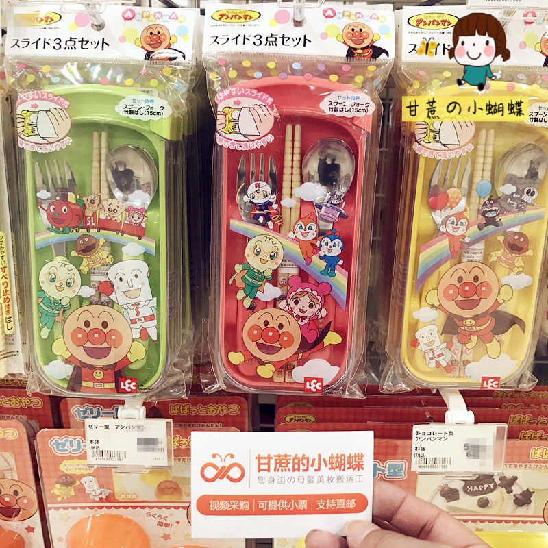 Японская посуда для кормления, детский комплект, переносные палочки для еды, Анпанман, (в наличии на складе)