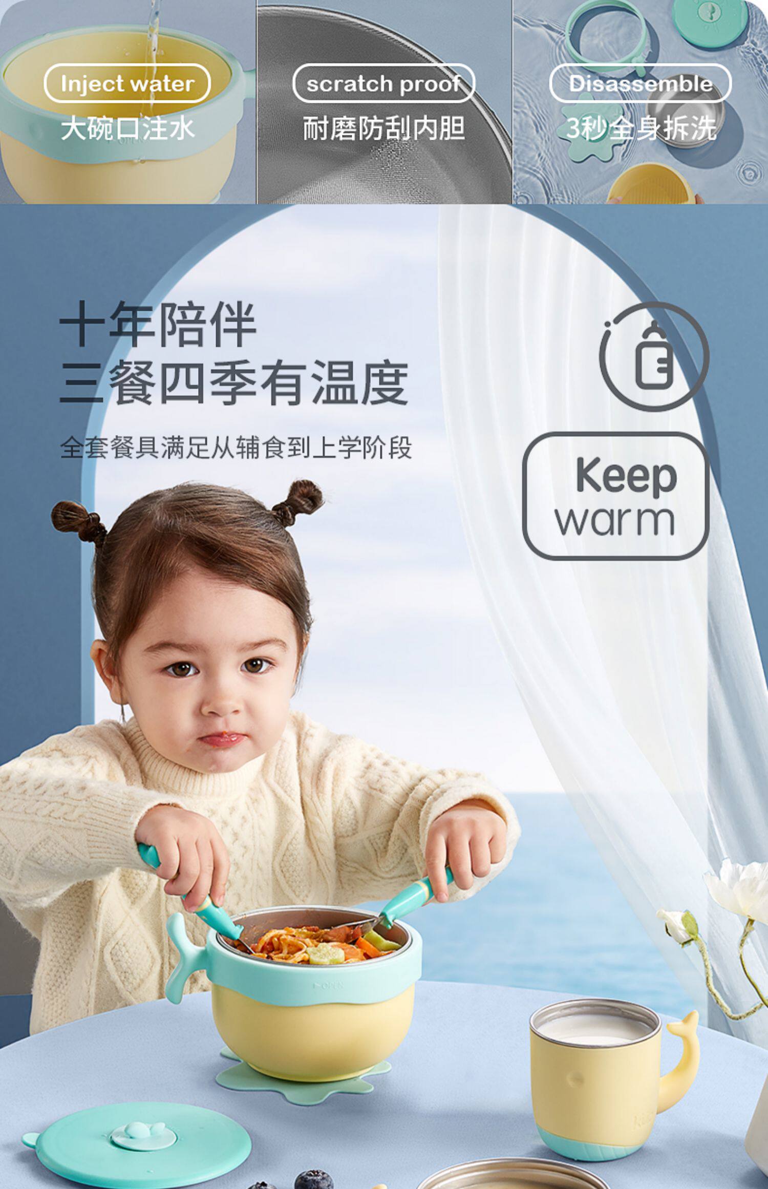 Детский увлажняющий термос, стульчик для кормления, посуда из нержавеющей стали, детская обеденная тарелка, поддерживает постоянную температуру