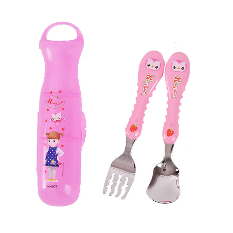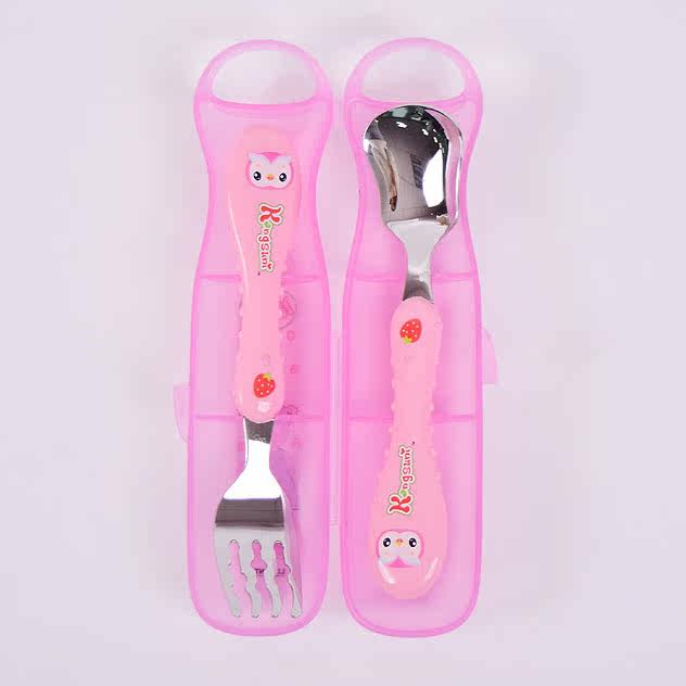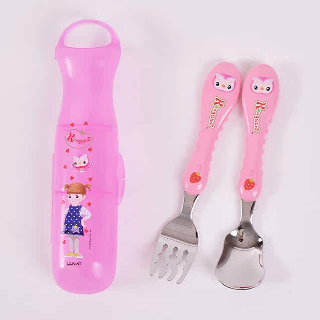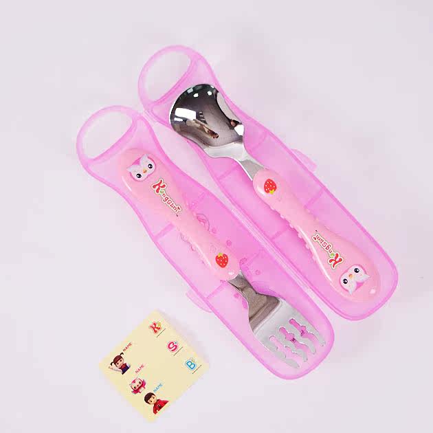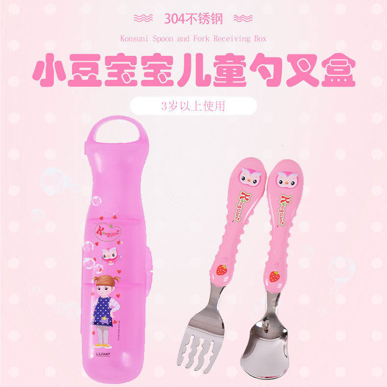 Импортная детская посуда из нержавеющей стали, комплект, ложка, вилка, коробка для хранения, в корейском стиле