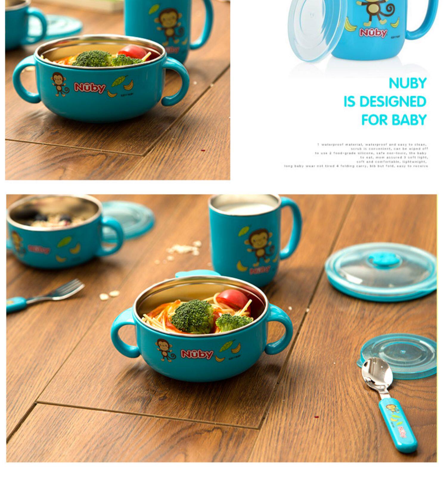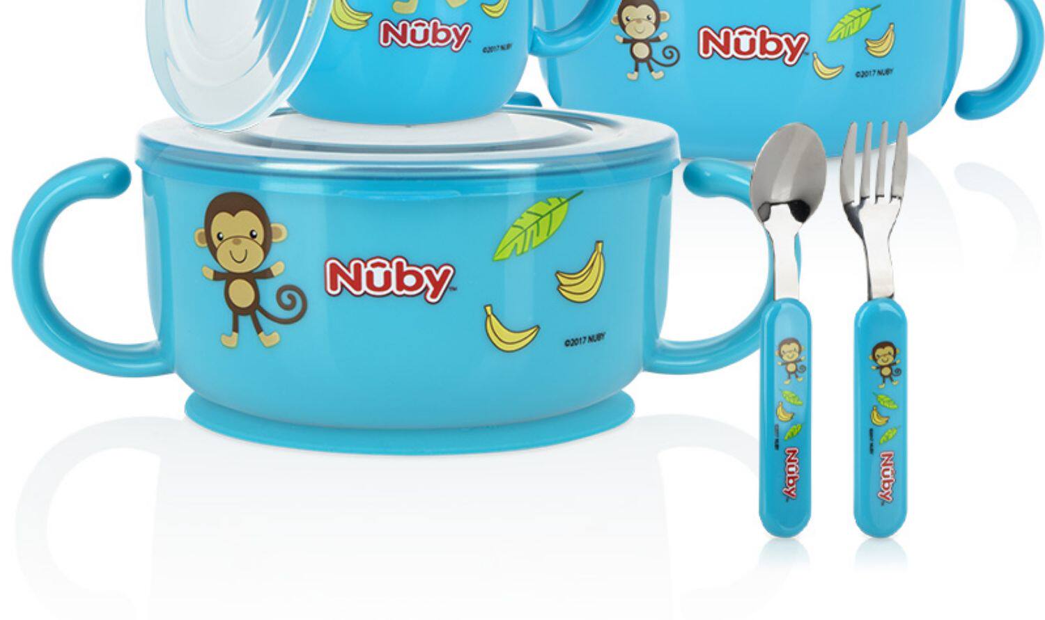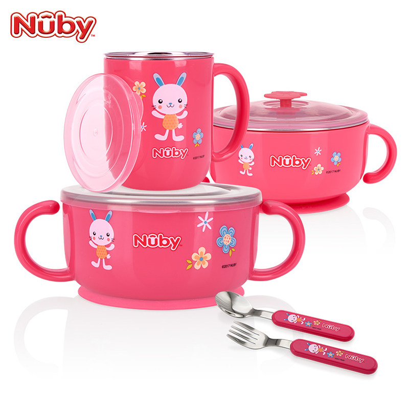 Nuby, детский увлажняющий термос из нержавеющей стали, посуда со стаканом, комплект, 5 шт