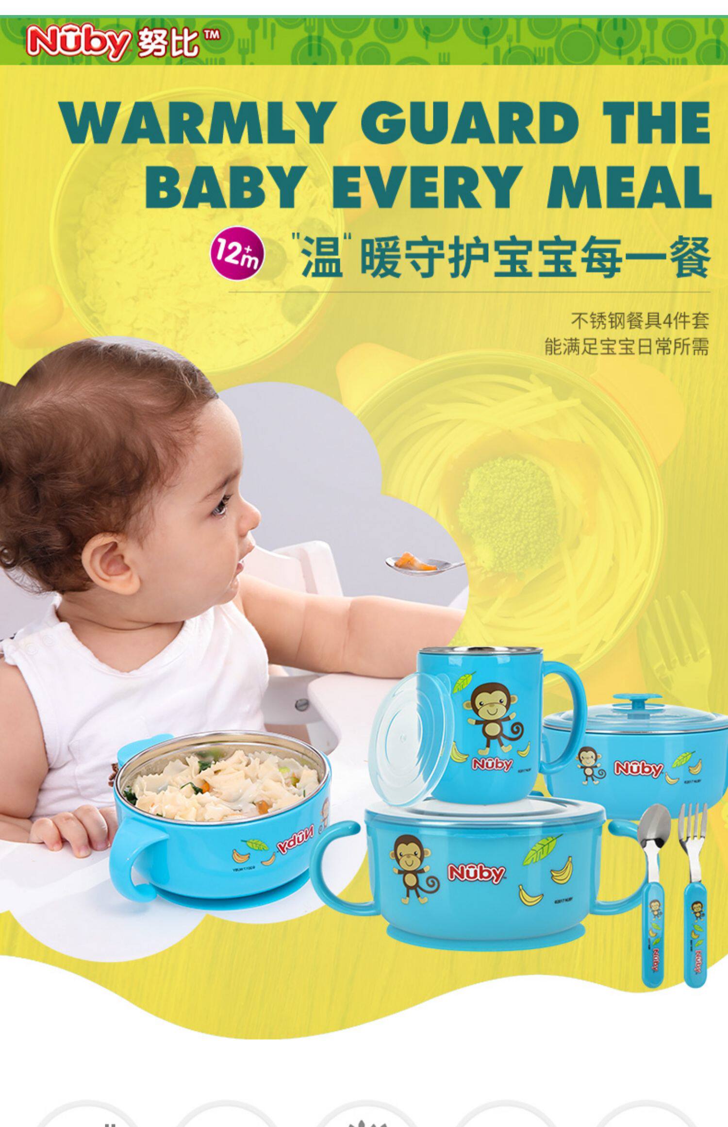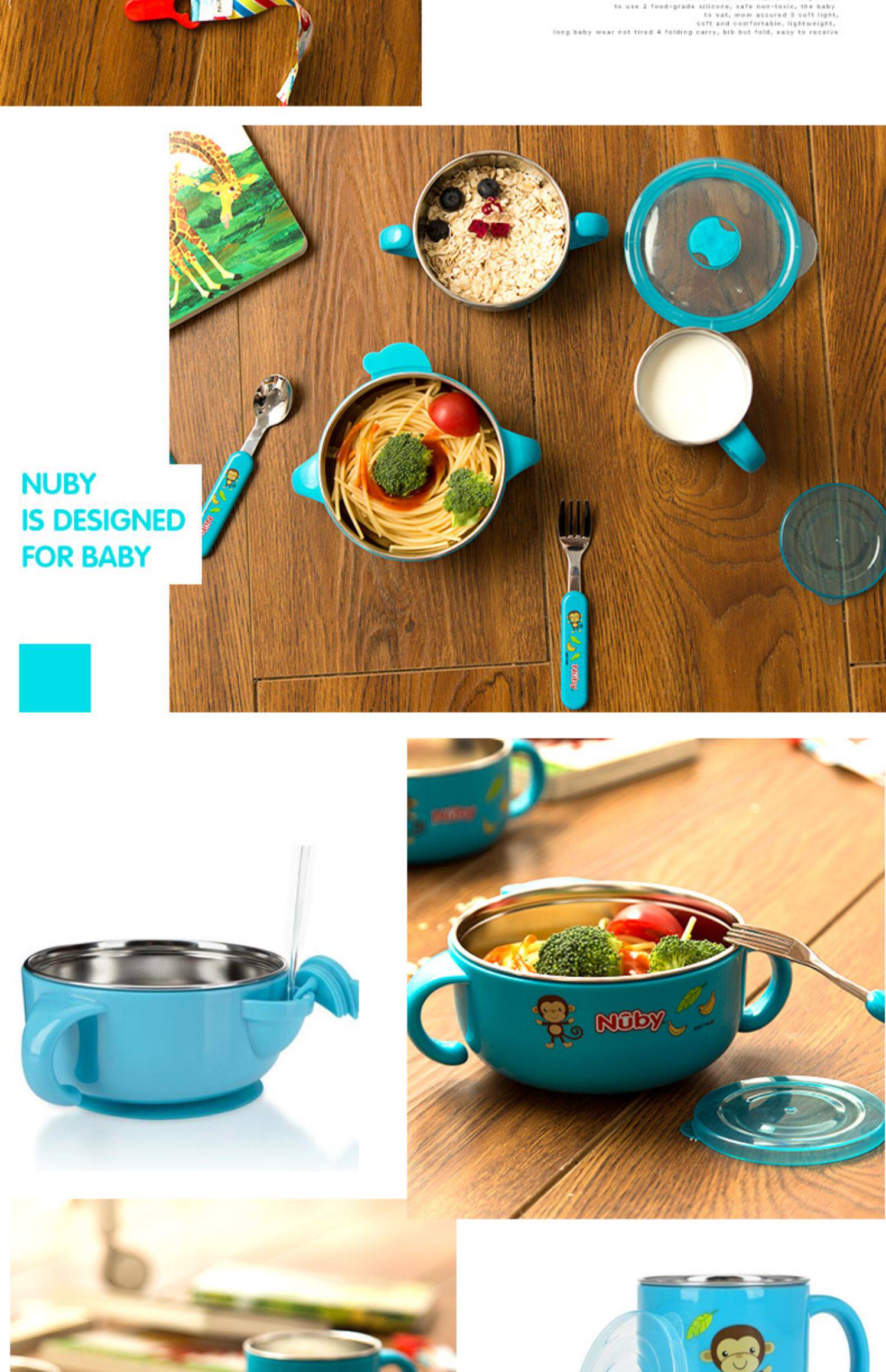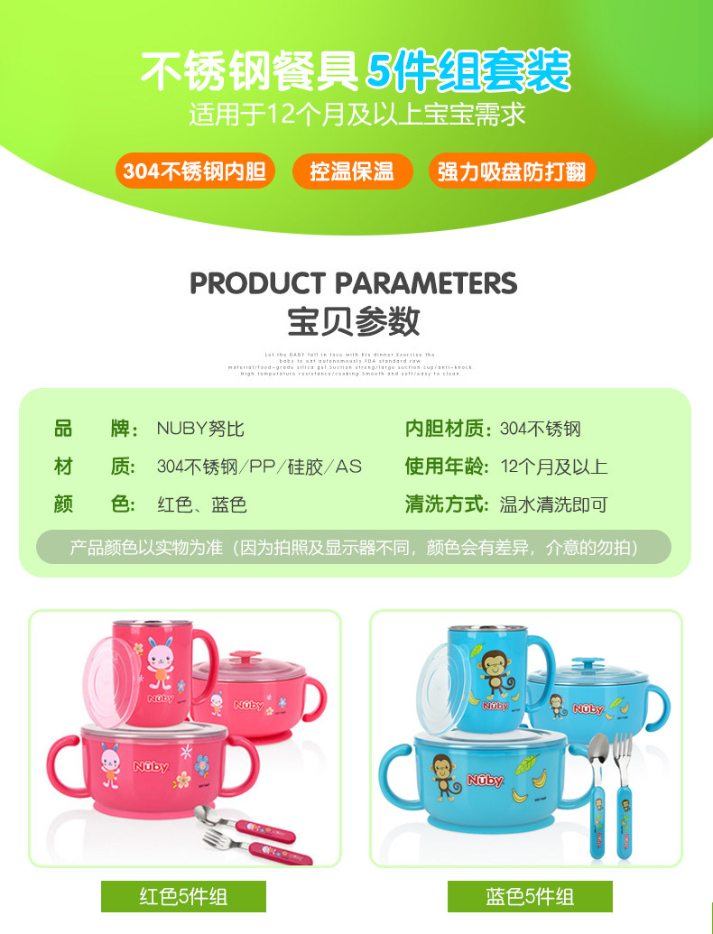 Nuby, детский увлажняющий термос из нержавеющей стали, посуда со стаканом, комплект, 5 шт