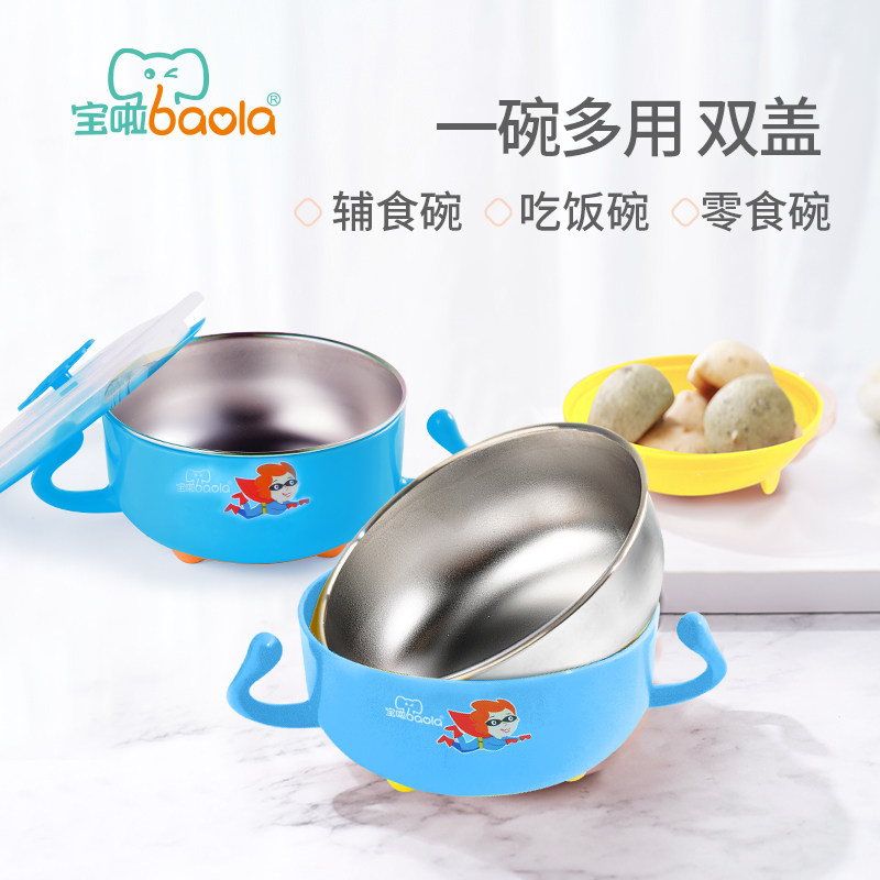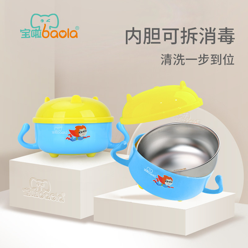 宝啦 Посуда для кормления из нержавеющей стали, детская съёмная мультяшная обеденная тарелка, защита при падении, защита от ожогов