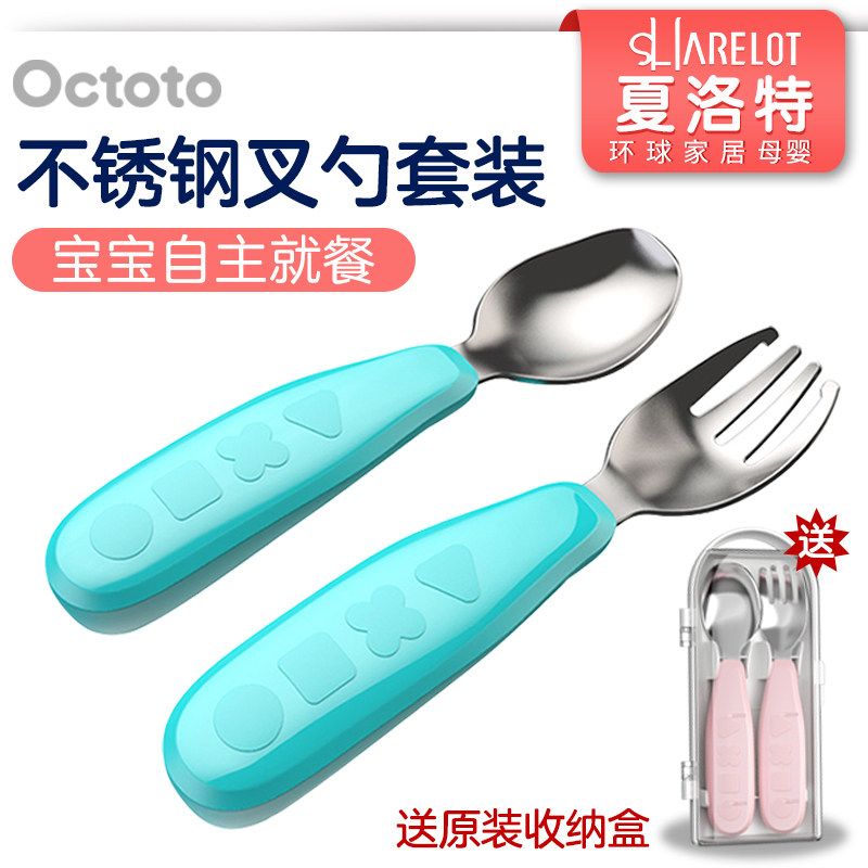 Детская обучающая ложка из нержавеющей стали, вилка, детский безопасный комплект для тренировок