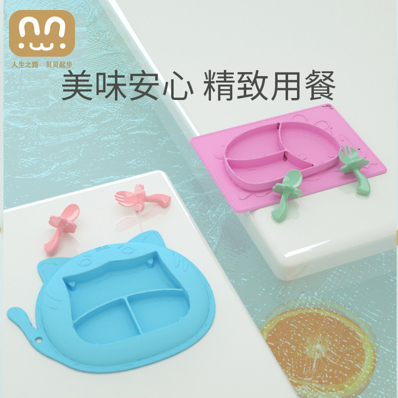 Стульчик для кормления, детская обеденная тарелка, мультяшная силиконовая посуда, ложка для тренировок для еды, комплект