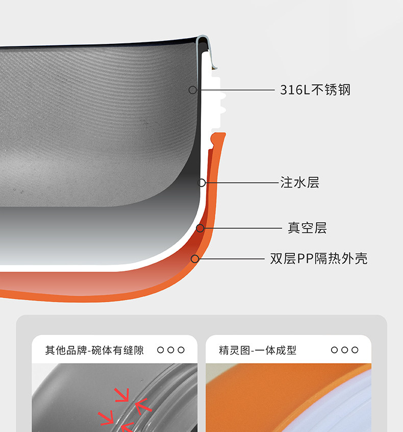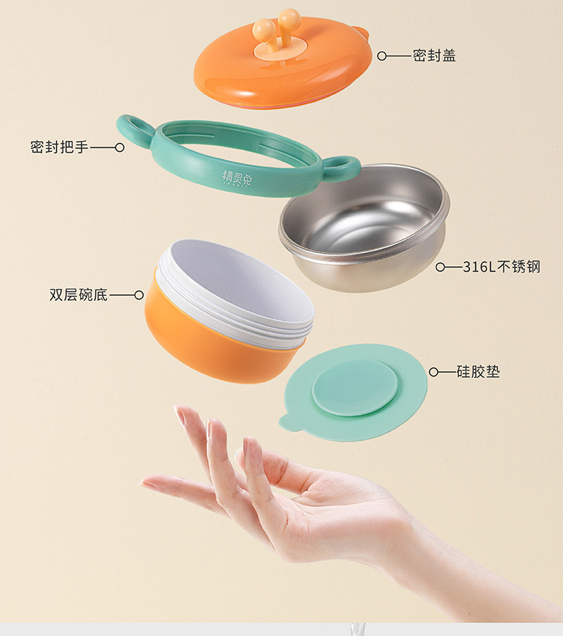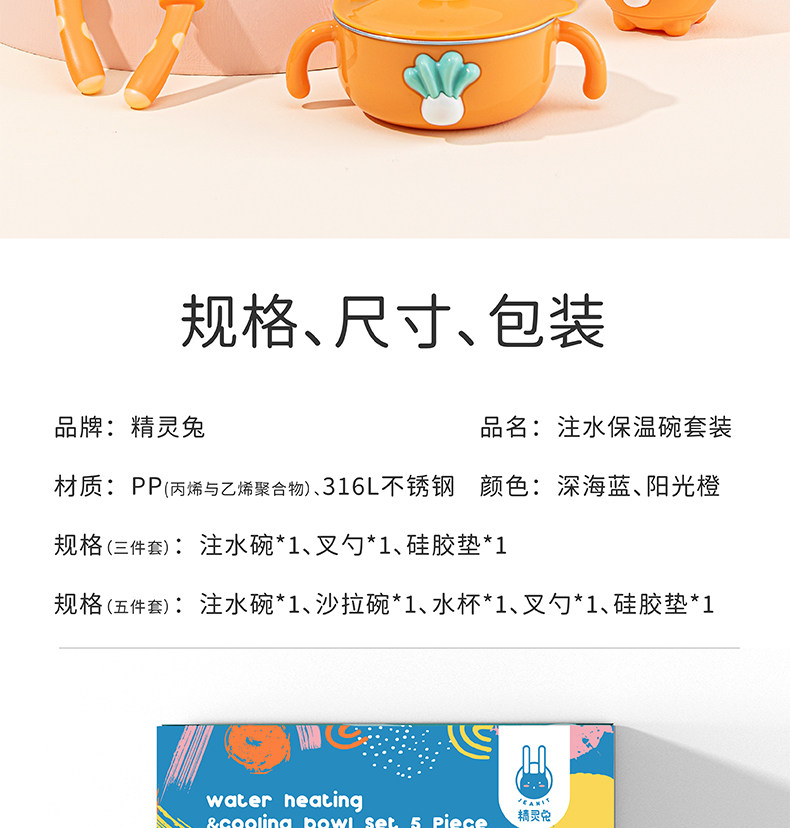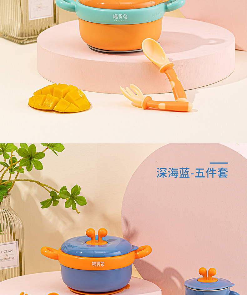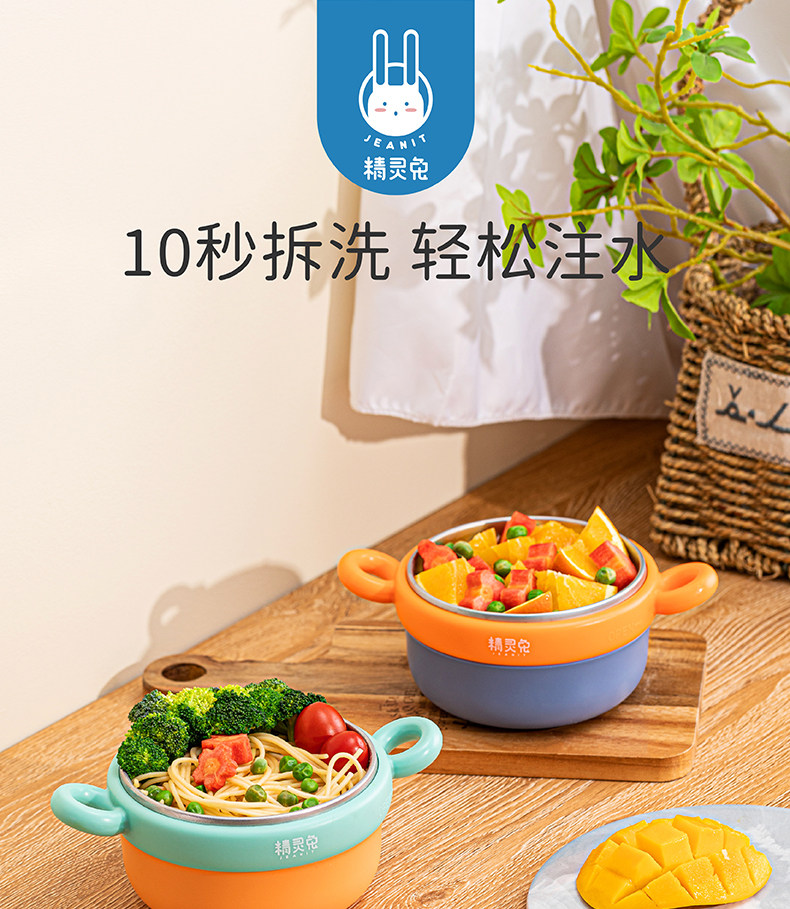 精灵兔 Детский увлажняющий термос из нержавеющей стали, комплект, съёмная детская обеденная тарелка, защита при падении, защита от ожогов