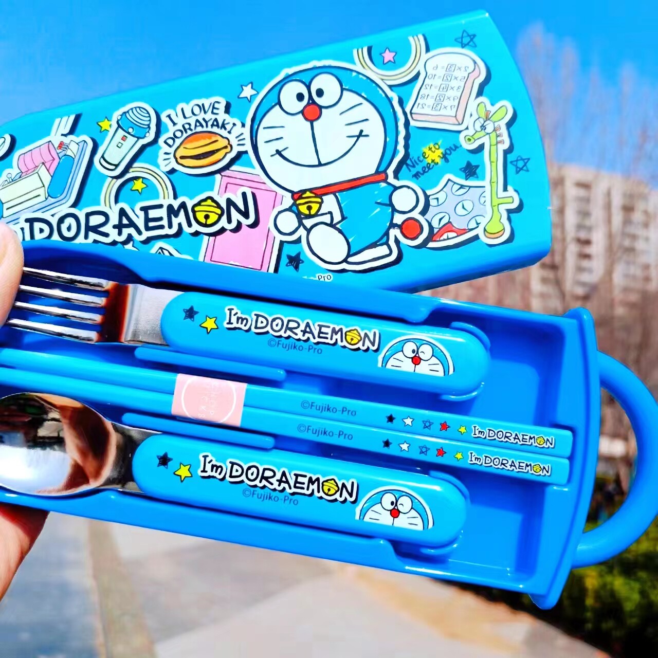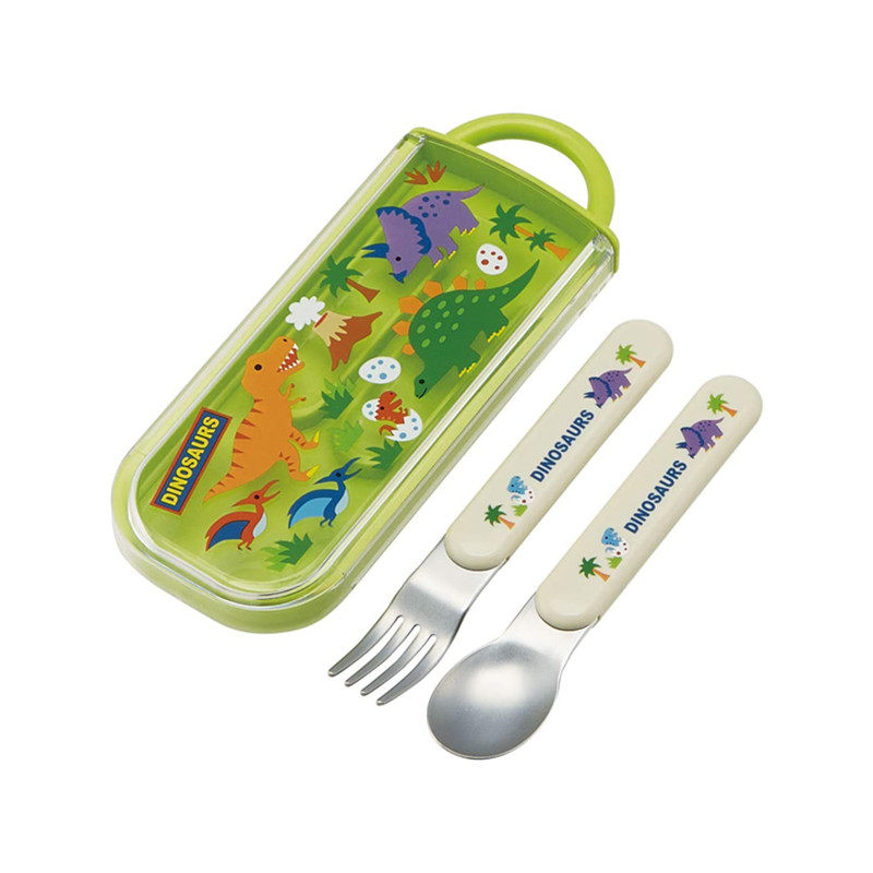 Японский детский динозавр, ложка из нержавеющей стали, портативные палочки для еды, посуда для выхода на улицу, комплект, (в наличии на складе)