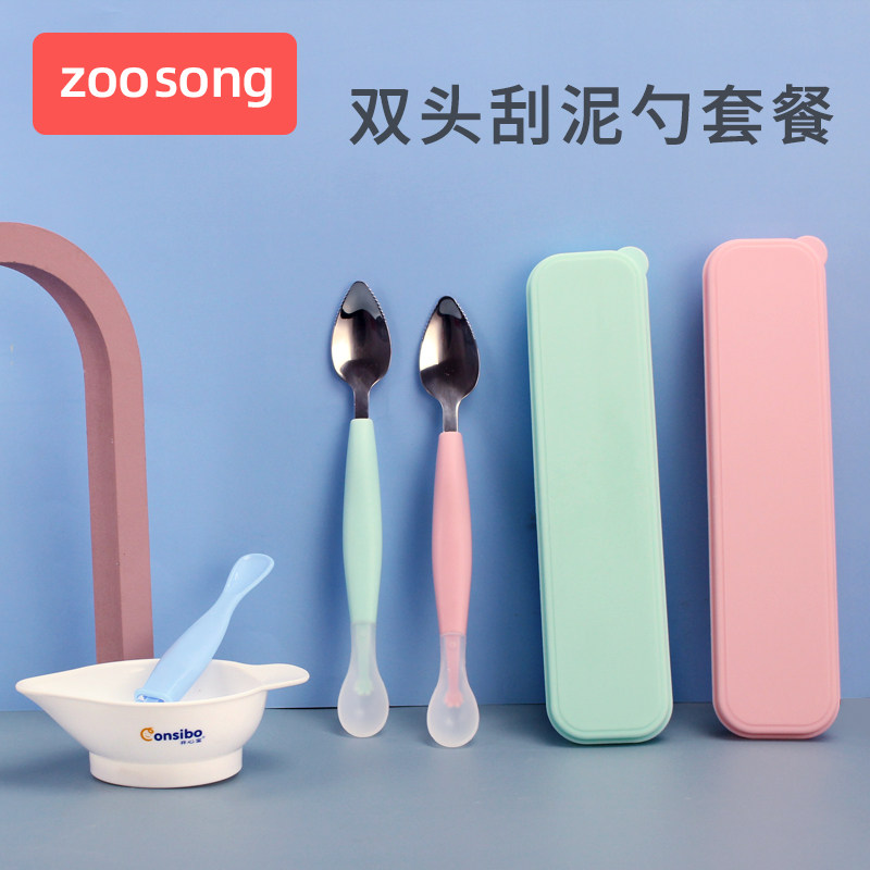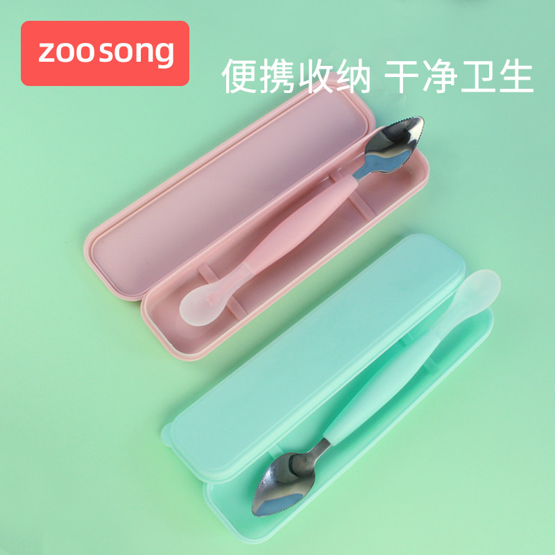 - 304 чистая стальная глиняная ложка + зеленая коробка для хранения