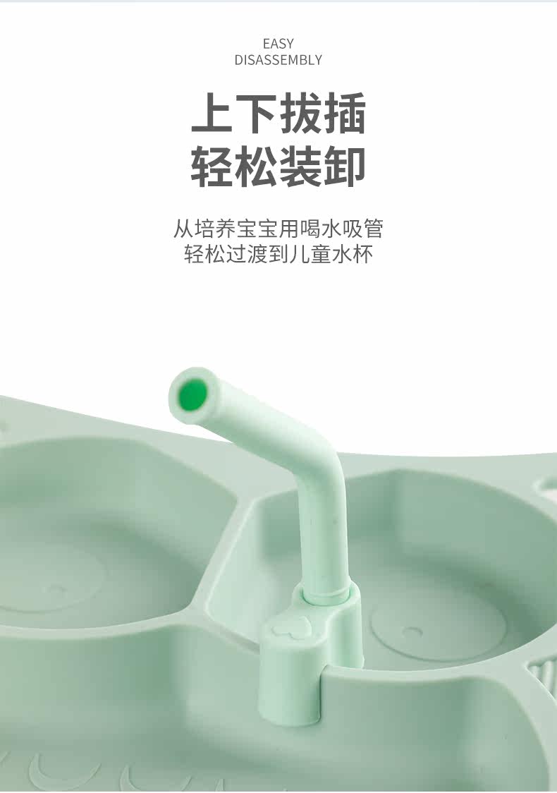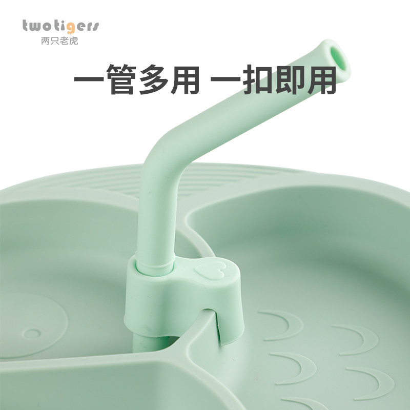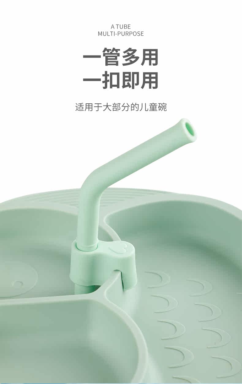 Детская силиконовая обеденная тарелка, трубочка, детские аксессуары для прикорма, «три в одном», 6 мес.