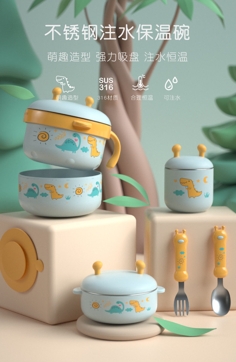 Детская обеденная тарелка, увлажняющий термос для младенца, комплект, посуда для еды для кормления, защита при падении