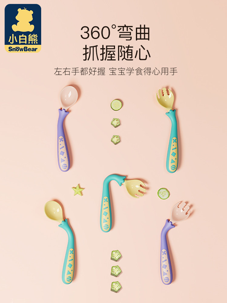 小白熊 Детская ложка для еды для тренировок для прикорма, посуда для кормления, комплект