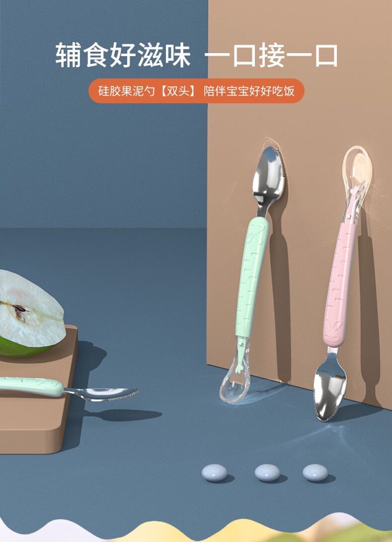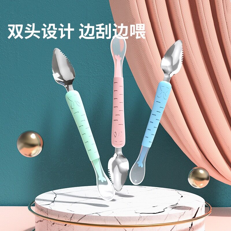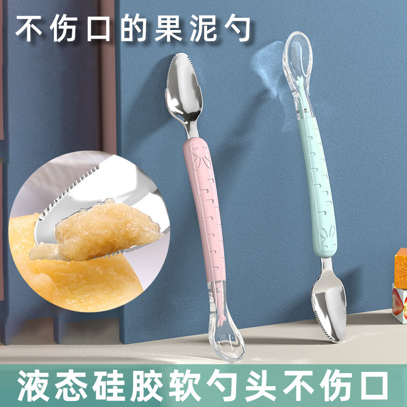 Дважды головокружительная ложка Scoon Silicone Dregging Scoon Scrapeing Fruit Mud Artfact Daby Food Tool Инструмент детская из нержавеющая сталь мягкая ложка
