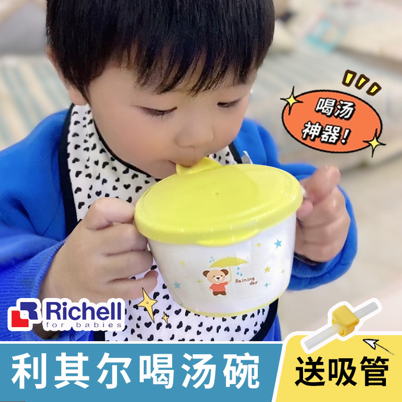 Личел Дети пьют суп миску, выпейте суп -чашку, детка, ешьте рисовую пасту специальную миску детское напиток каша артефакт, выпить суп -соломенную миску