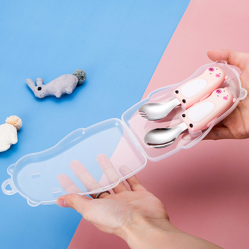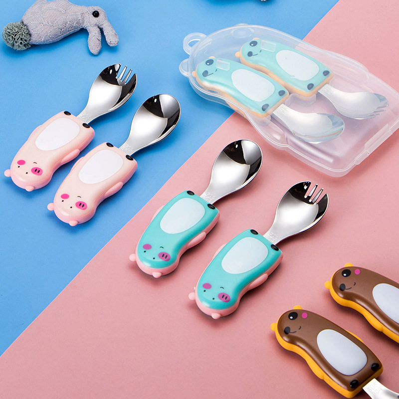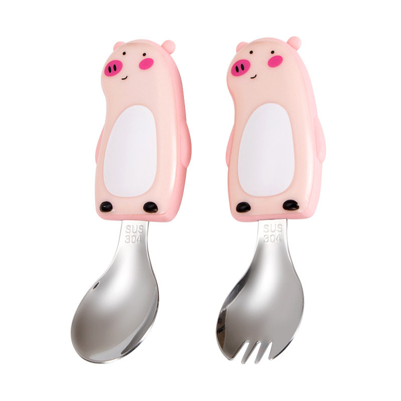 Мультяшная посуда для кормления, детский комплект для детского сада, ложка для прикорма из нержавеющей стали, вилка, нержавеющая сталь AISI 304
