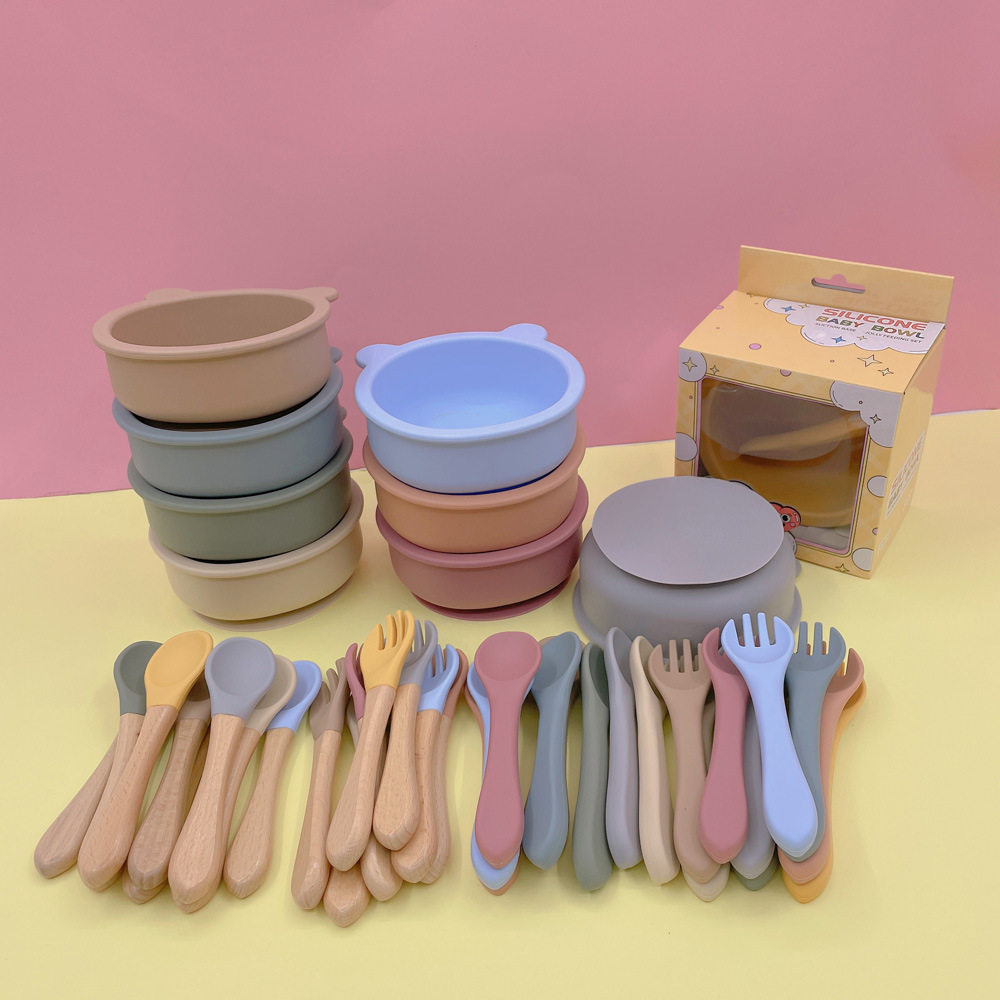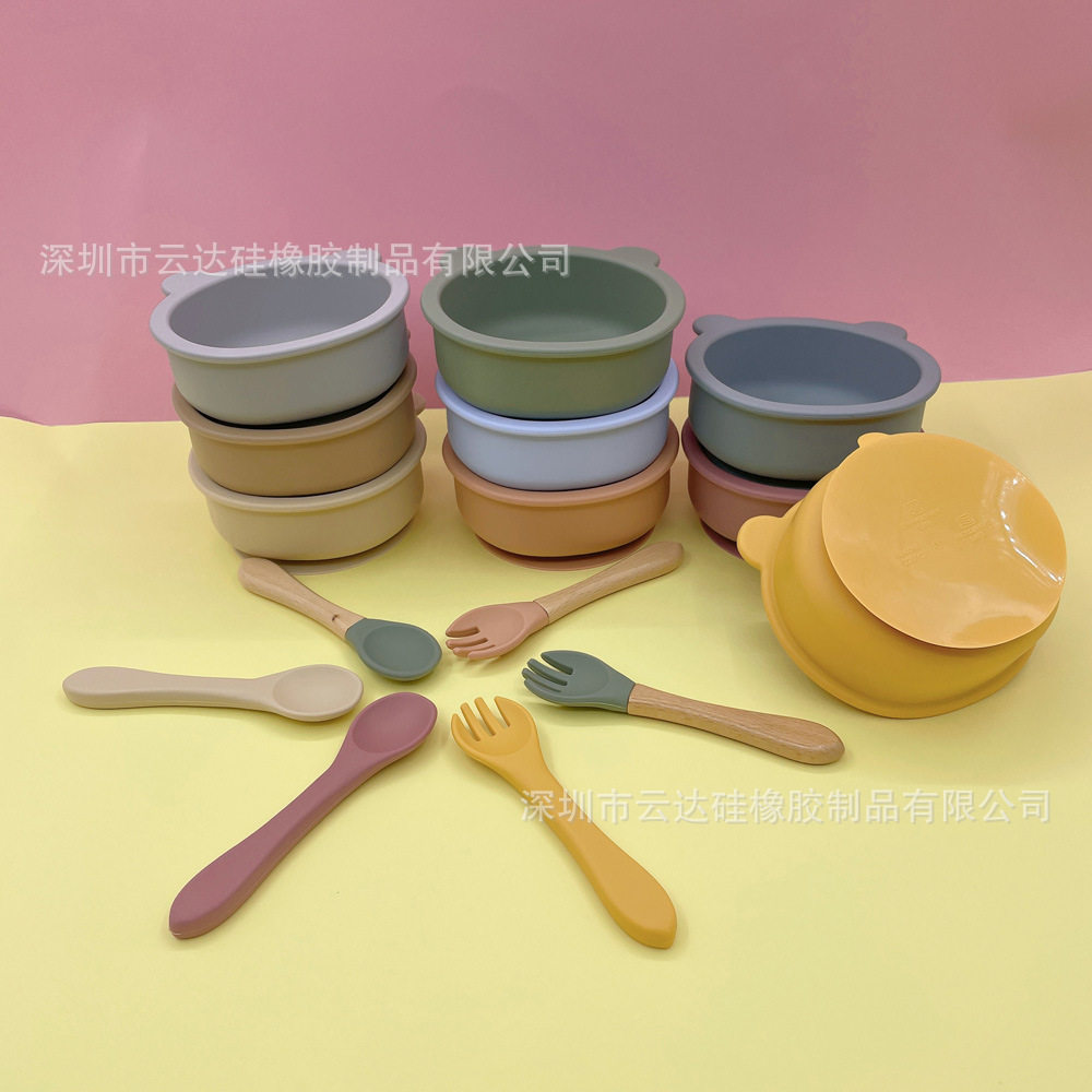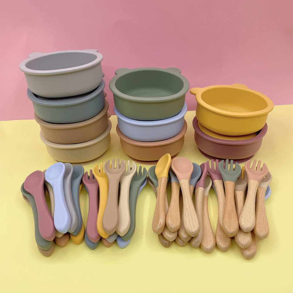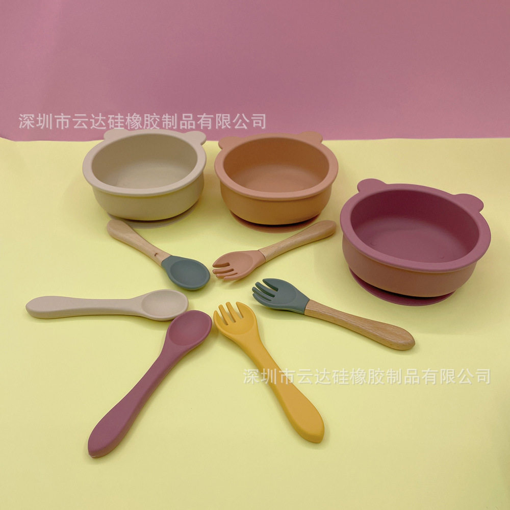 Пищевой силикон, детская обеденная тарелка, посуда для еды, комплект, с медвежатами