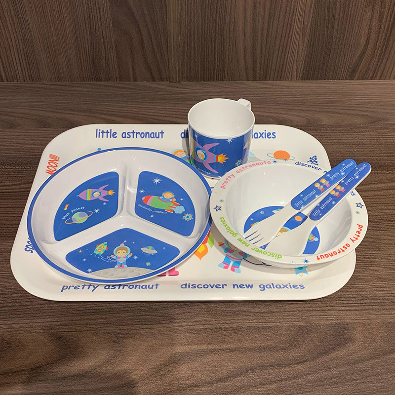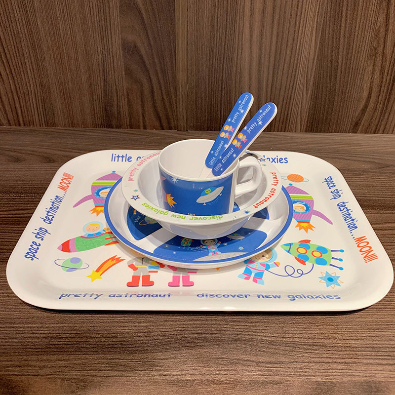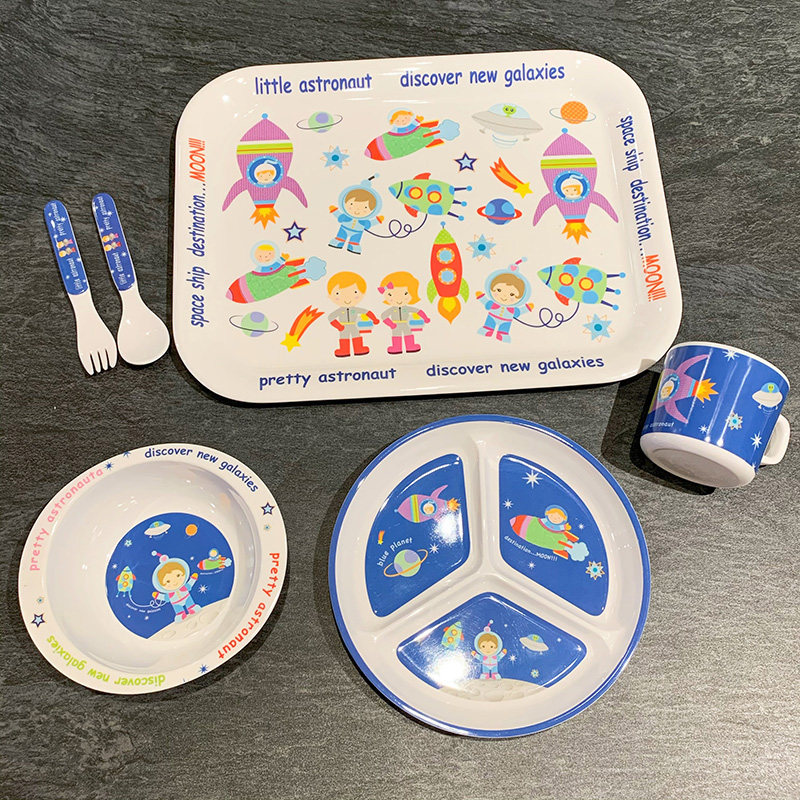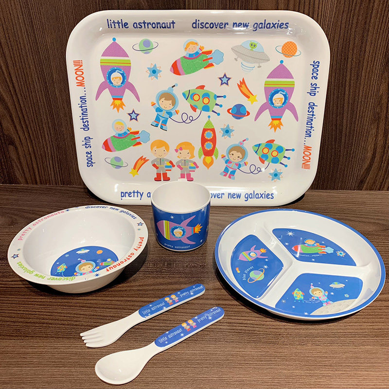Мультяшная посуда для кормления, космический корабль, детская обеденная тарелка для прикорма для еды со стаканом