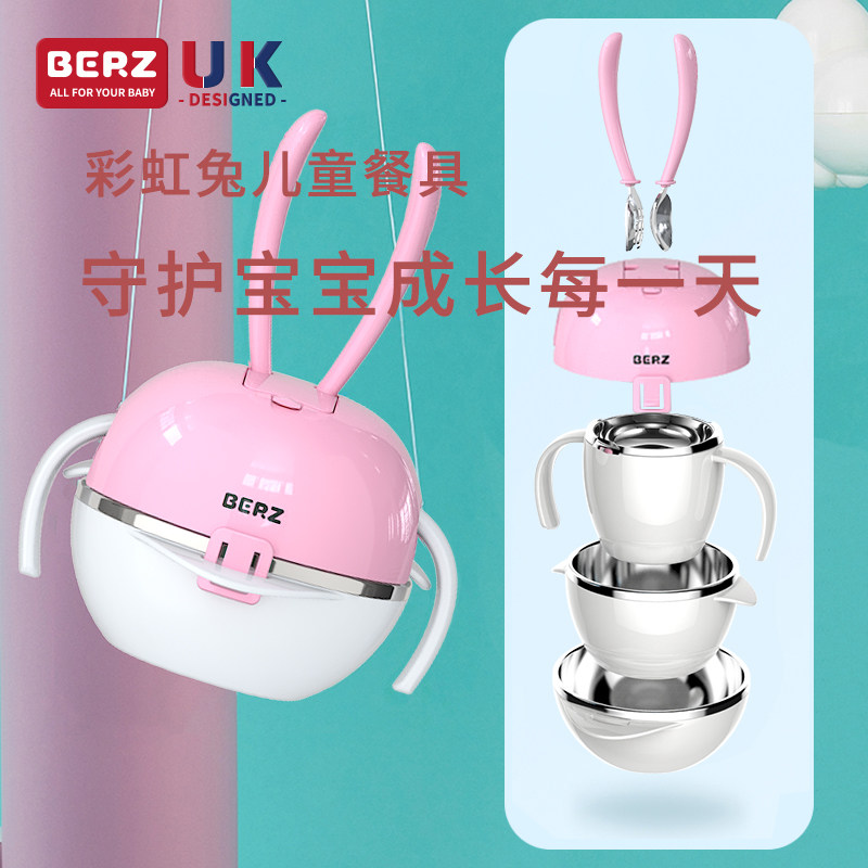 Радужный детский кролик, посуда, комплект для еды, обеденная тарелка из нержавеющей стали для младенца