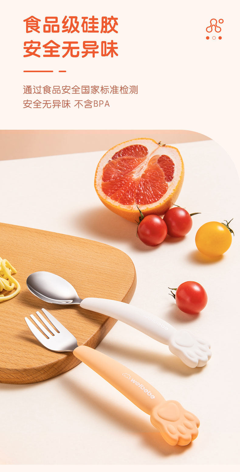 Детская посуда для кормления, силиконовый комплект, ложка из нержавеющей стали, вилка для еды