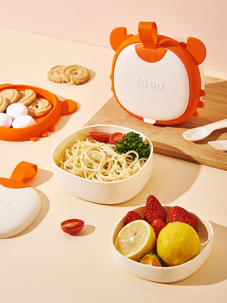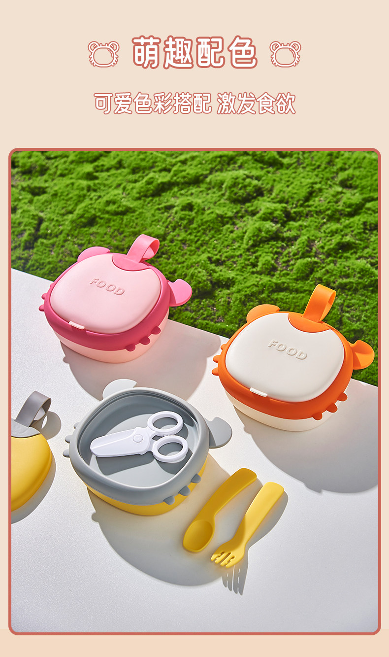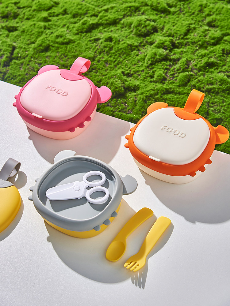 Детская силиконовая обеденная тарелка для выхода на улицу, портативная посуда для кормления, комплект