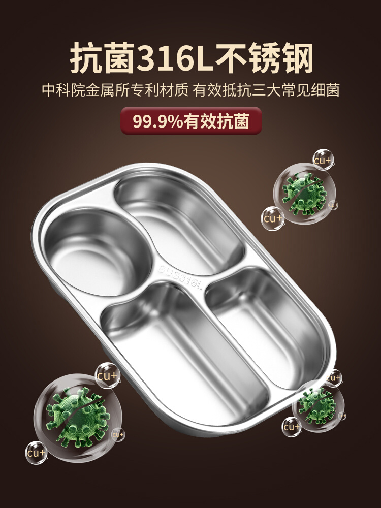 Обеденная тарелка из нержавеющей стали для кормления подходит для мужчин и женщин, детская посуда для детского сада для прикорма, комплект