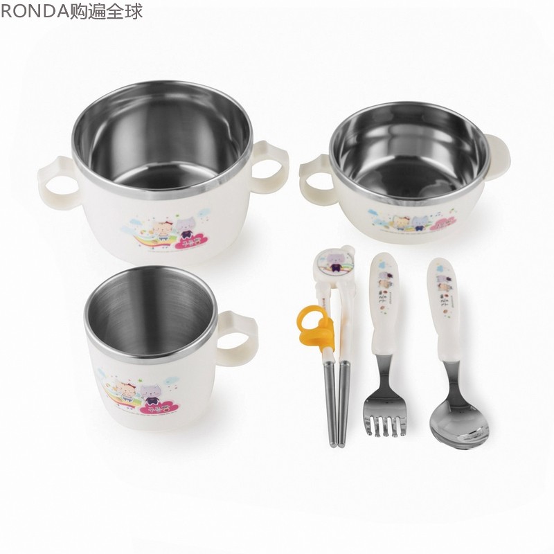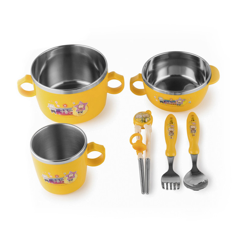 Практика из нержавеющей стали, детская милая посуда для кормления, комплект, Южная Корея, защита при падении, 6 шт