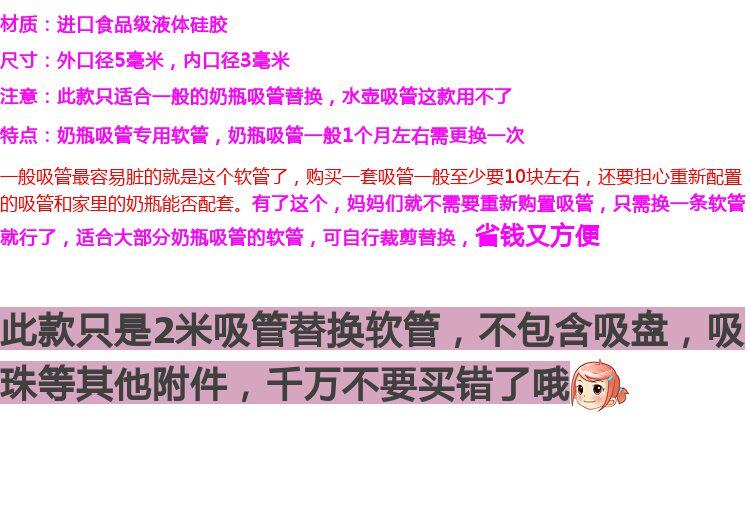 Пищевой силикон, бутылочка для кормления, сменная трубочка, аксессуар, 2м, широкое горлышко