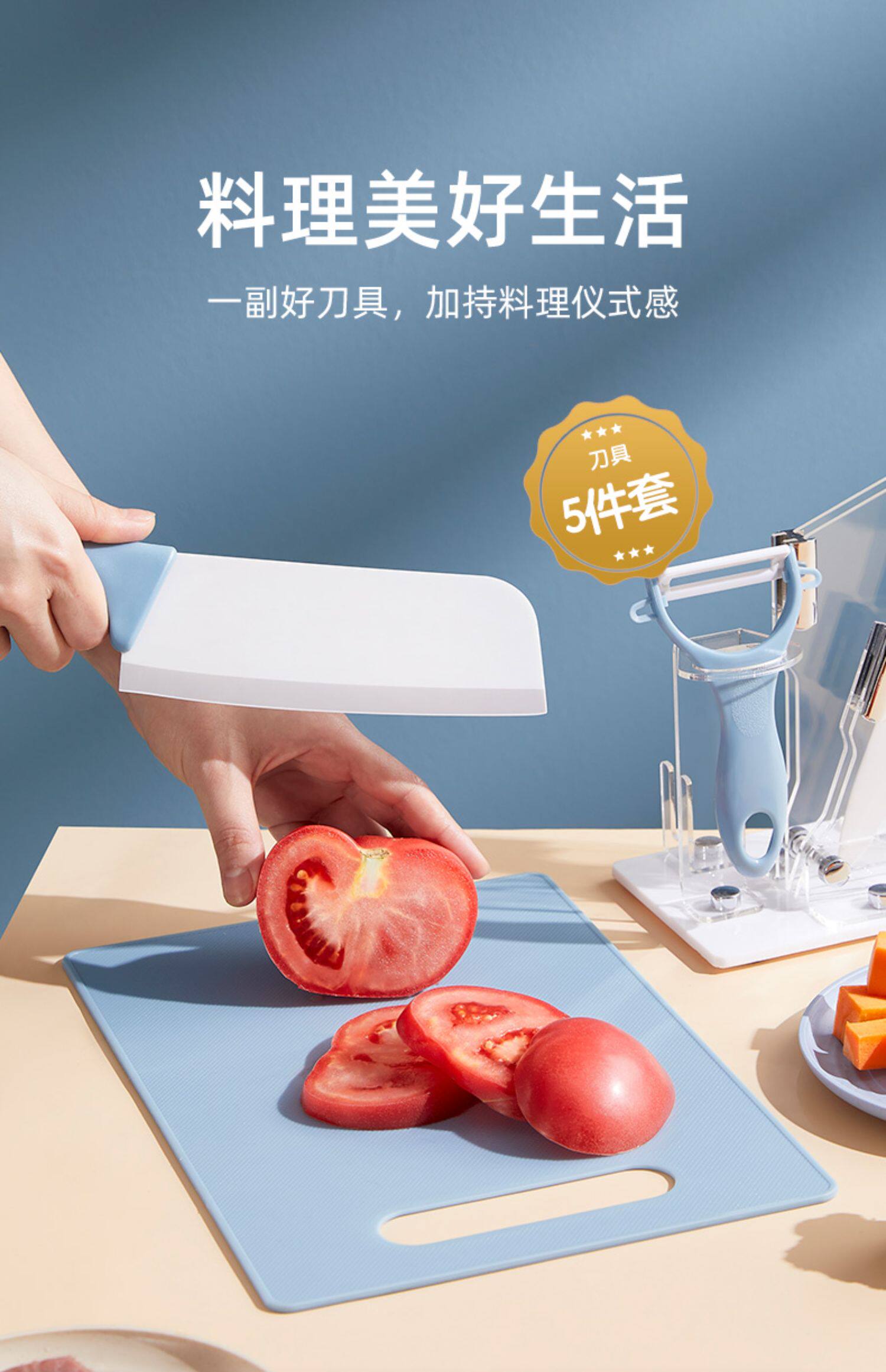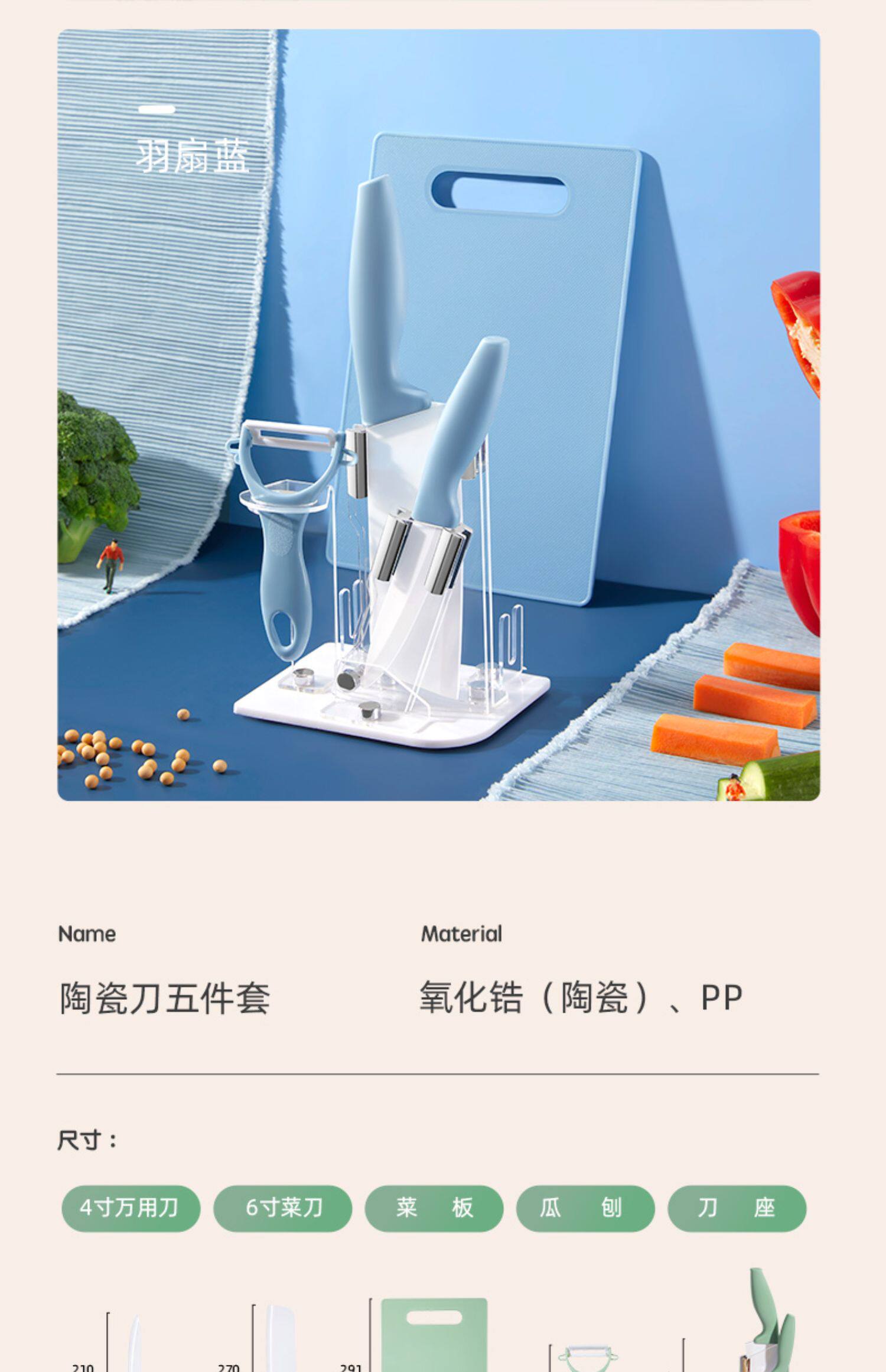 - Керамический фруктовый нож пять -части -набор -фазтер вентилятор синий