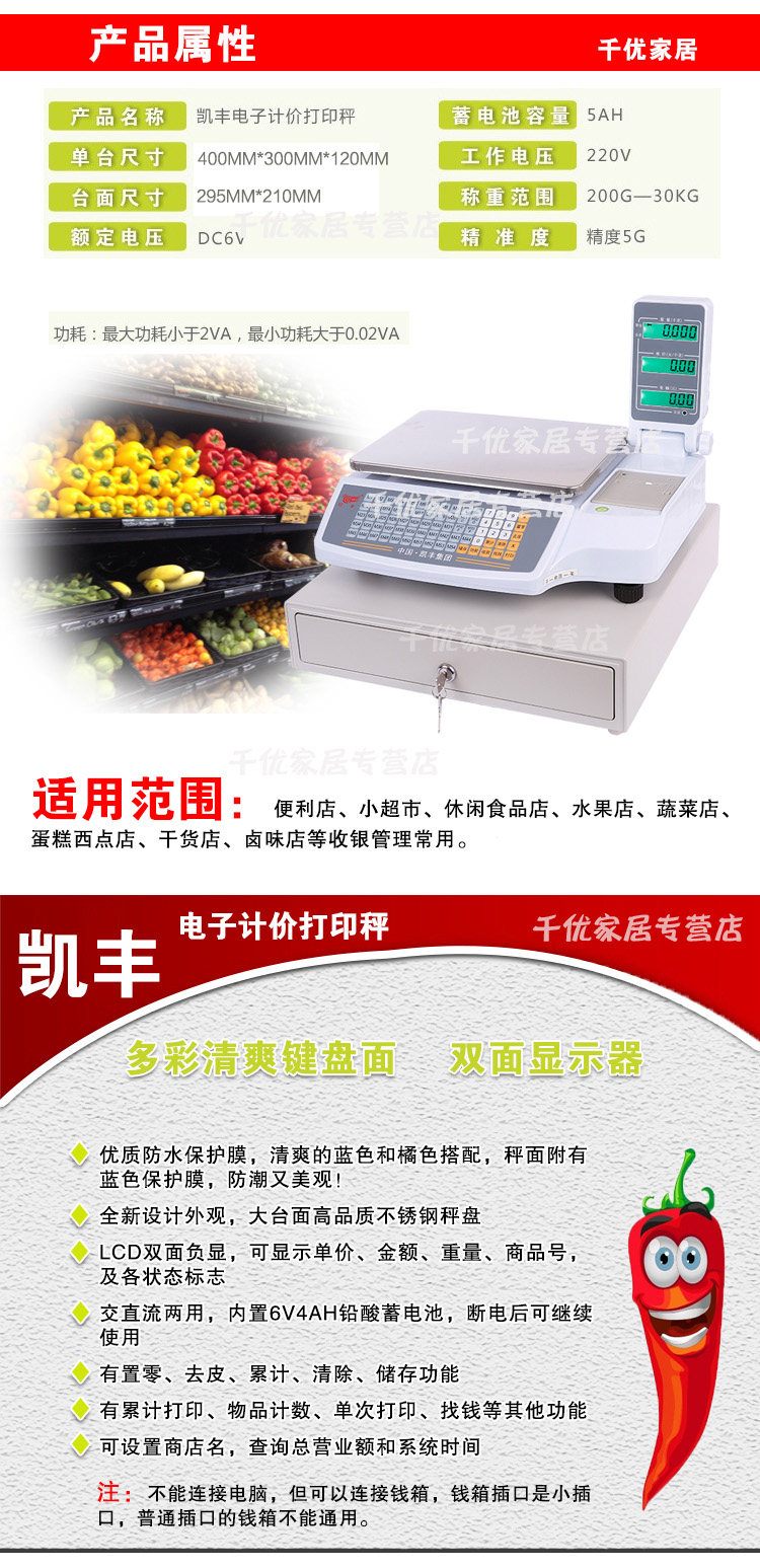 凯丰 Электронный штрих -код называется серебряной квитанцией, называемой ценой, называемой супермаркетом, называемой Taiwan Scale 30 кг/5G