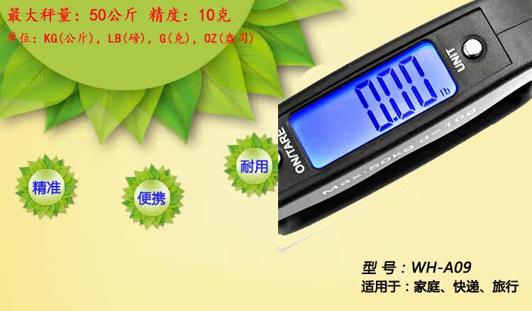 Electronics Weiheng называется ручной шкалой 50 кг мини -курьер -курьер, портативный багаж с высоким уровнем масштаба, специальное предложение, крюк с предложением.