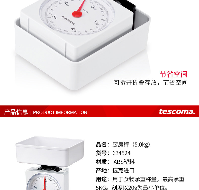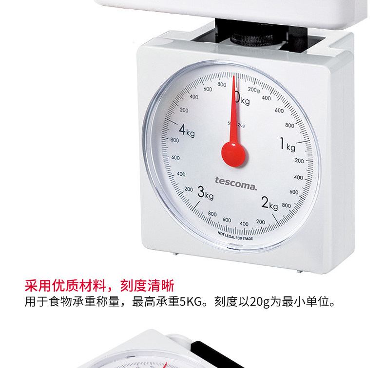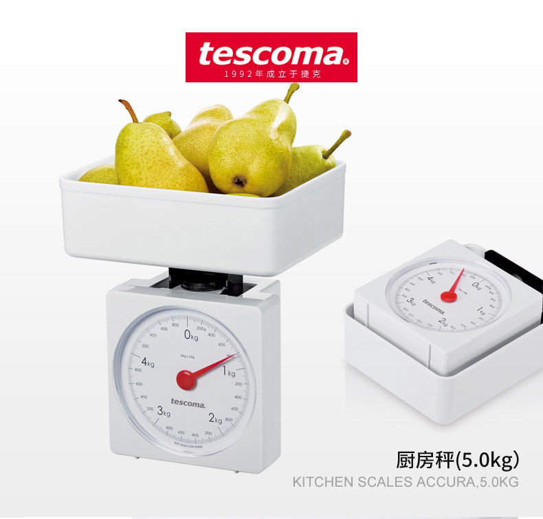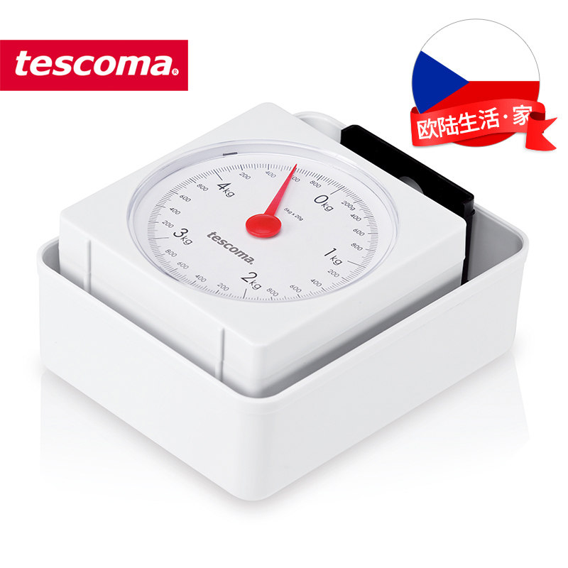 Чешская Tescoma Home Spring Scale Mechanical Kitchen называется тяжелой квадратной тарелкой, называемой нагрузкой на 5 кг.