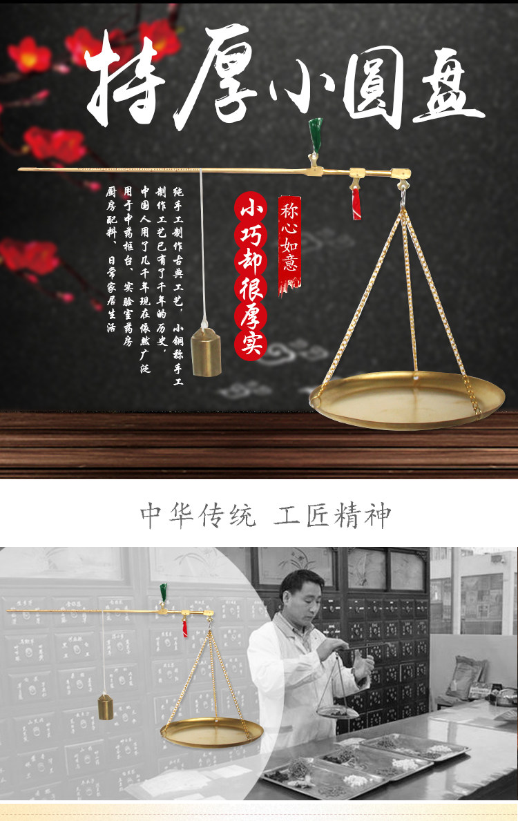 月骑 Китайская медицина медная масштабная масштабная масштаб Маленький диск 250 грамм китайской медицины Шкала Маленькая медная шкала Шкала лекарственного материала Стержень медный стержень
