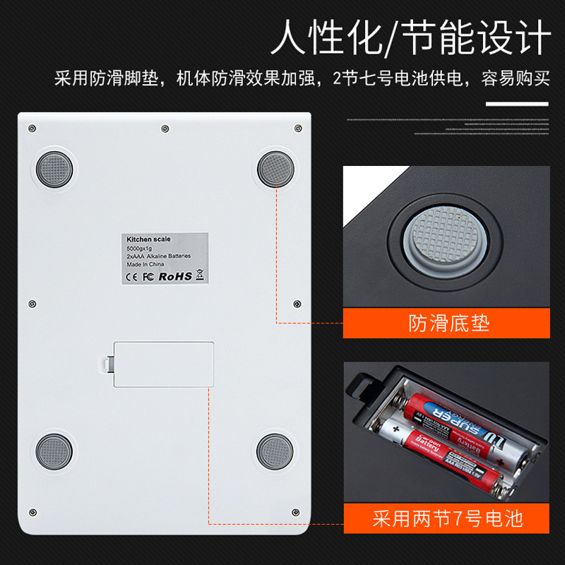 【5 кг/1G】Верхний предел пальца составляет 5 кг, точность составляет 1 грамм, 5 грамм называется, ошибка находится в пределах 3 грамма, а диапазон взвешивания составляет 5 грамм-5 кг.