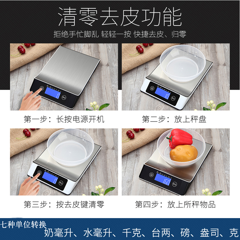Четыре цветных электронных масштаба кухонная масштаба из нержавеющей стали домашние граммы, называемые пищами, малые весы для выпечки Электронный, называемый вес 15 кг