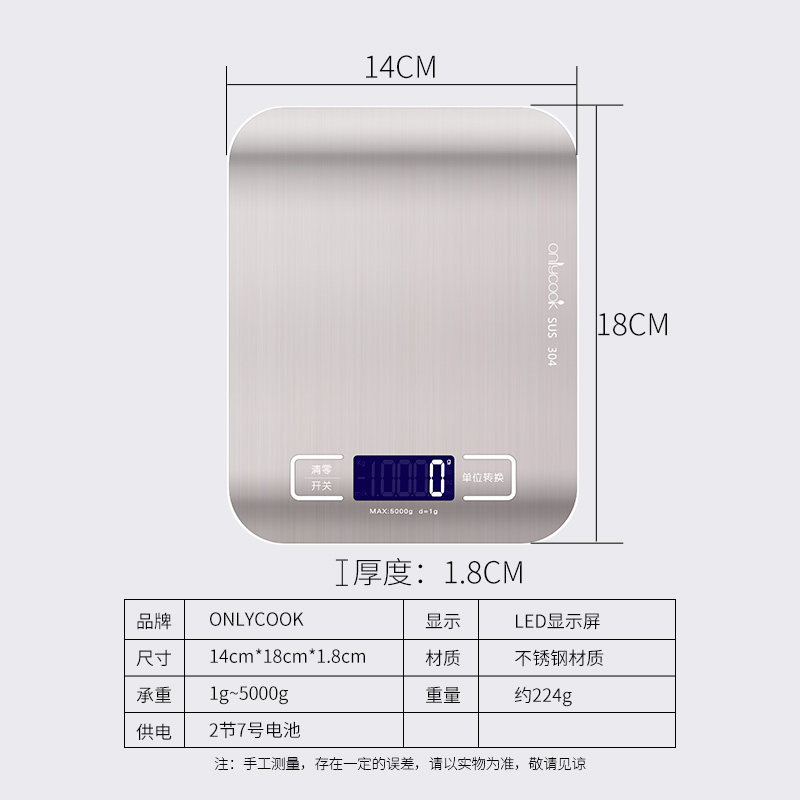onlycook Электронная вызов семейной кухни для мини -кулинарной шкалы, небольшие электронные чешуйки из нержавеющей стали.