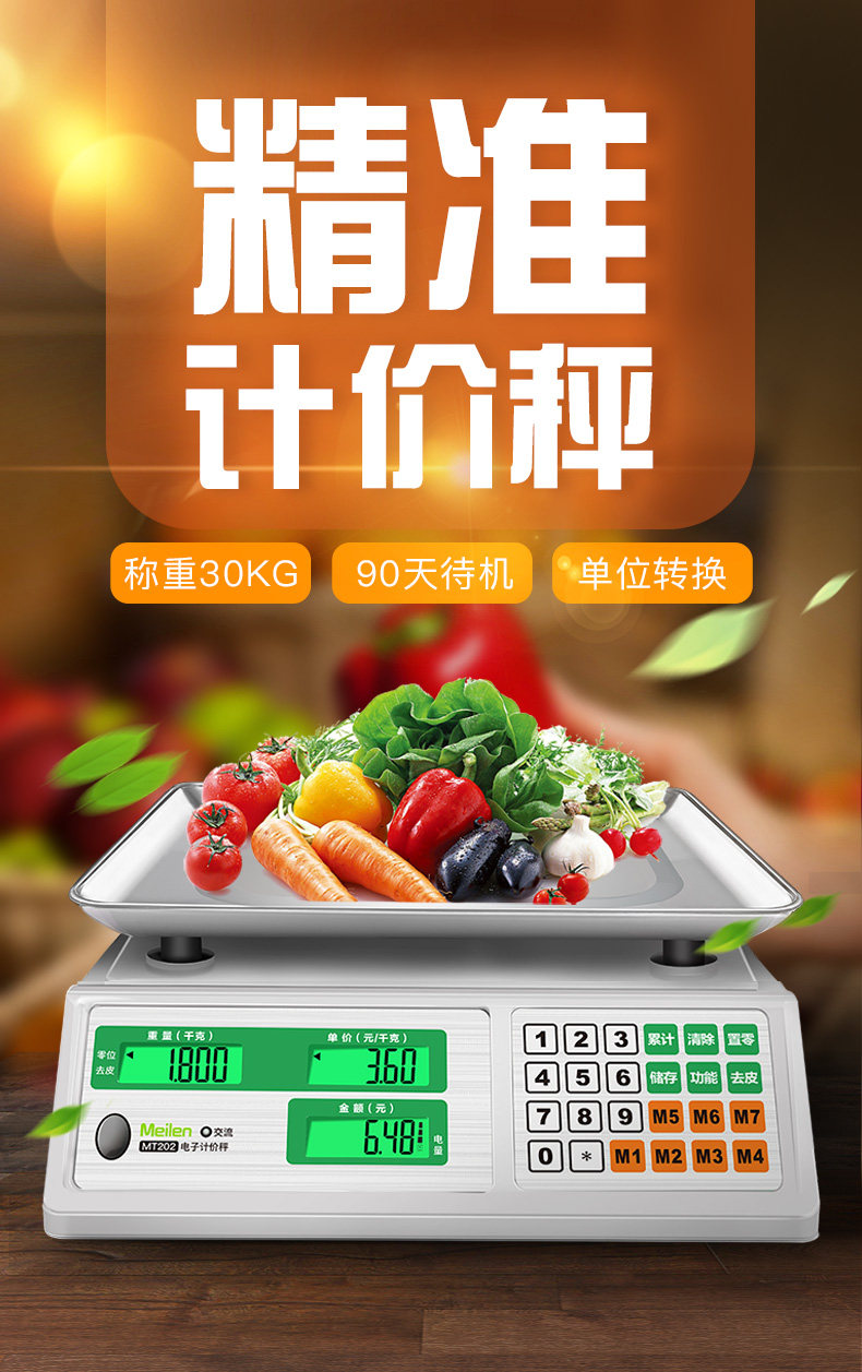 30 кг взвешивания электронных масштаб Коммерческие настольные шкалы Точные мелкие продукты продают овощные кг высокая точность 1 г высокой точки 1G