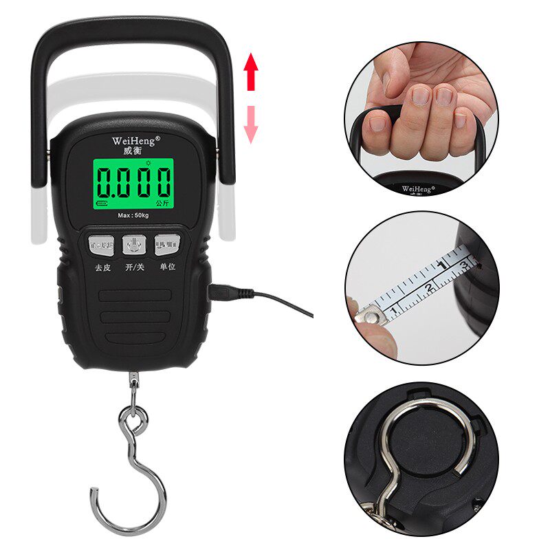 50 кг электронная шкала багажа заряжая курьерские шкалы Weiheng Hadicap Scales, весна домашнего масштаба, называемое рыболовным масштабом для покупки еды
