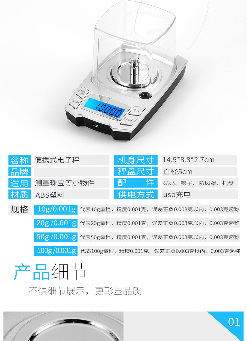 - 0,001 г/100 г ветропроницаемого капюшона+поддон+вес+USB -линия+пинцет+грузовой страховка