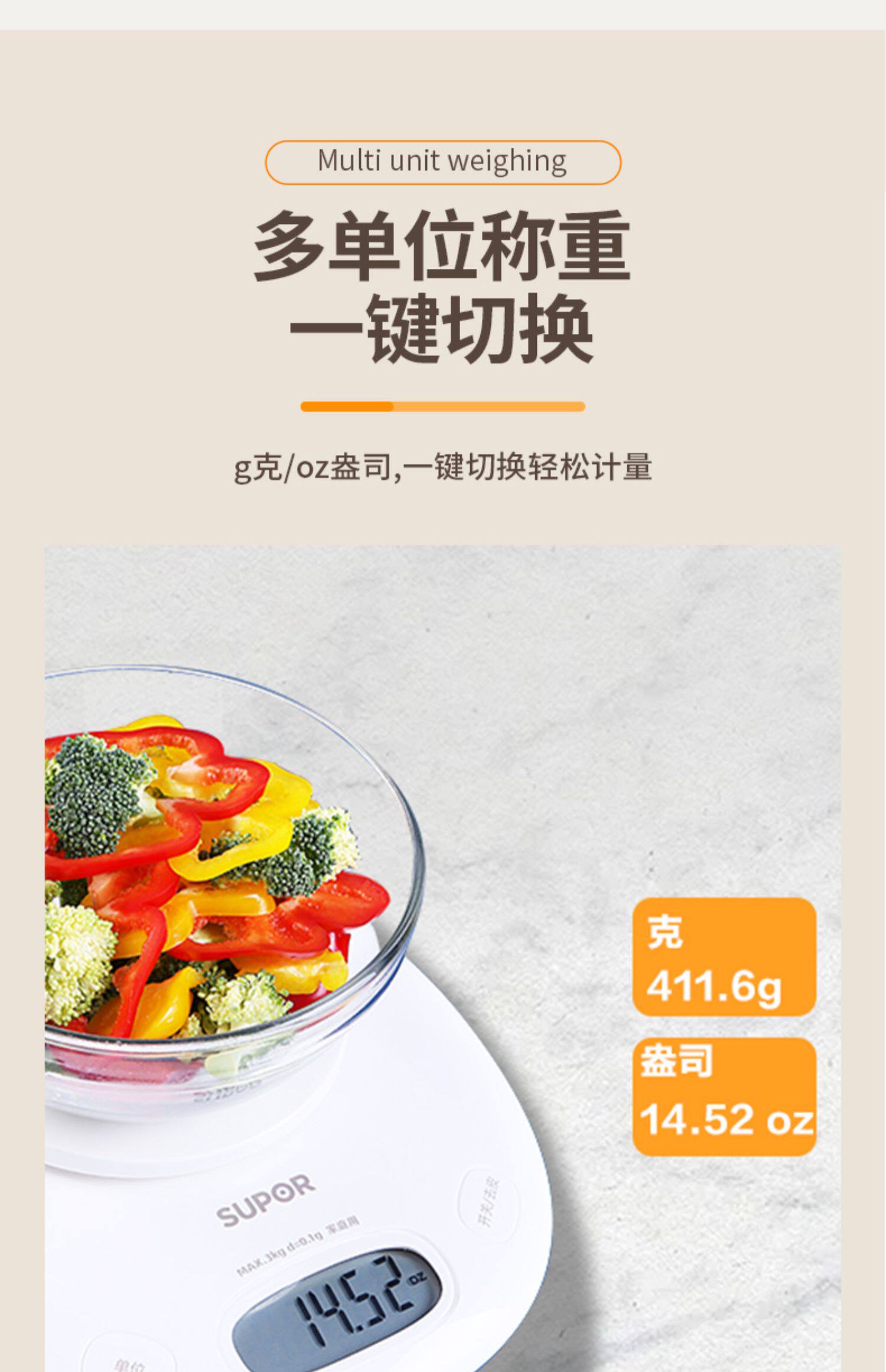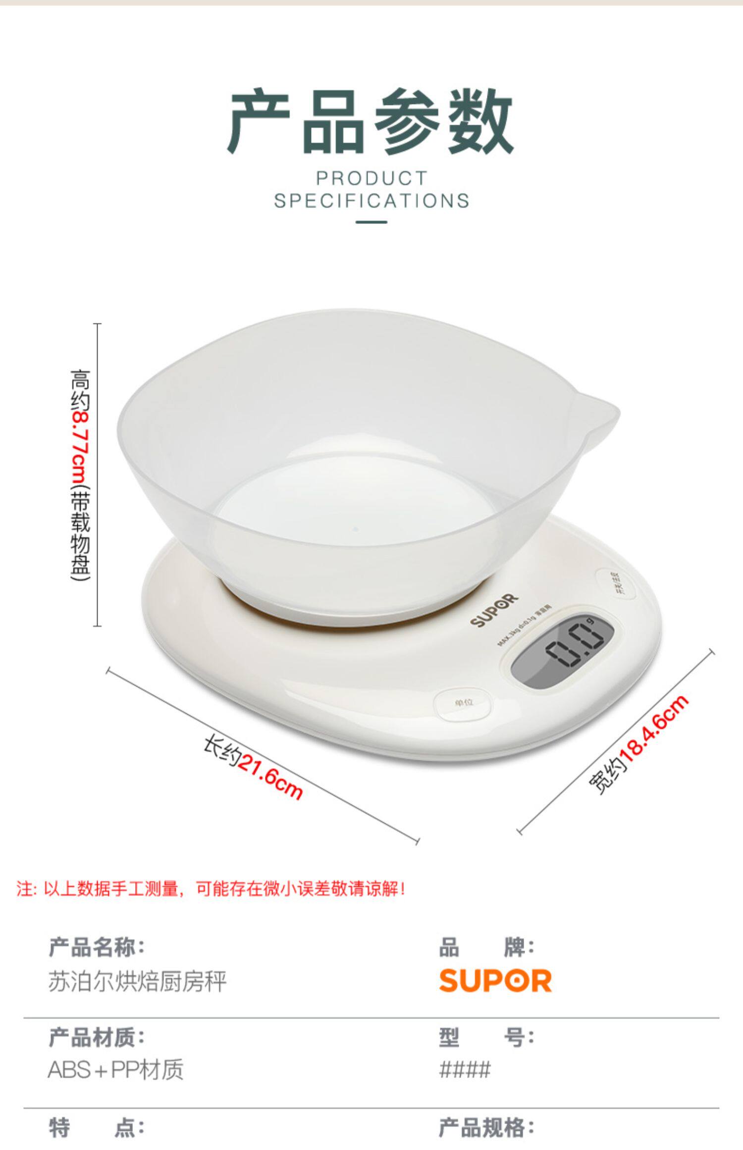 Supor Electronic Scale Shignage Небольшой выпечка торт торт торт чистый кухня пища вес вес.