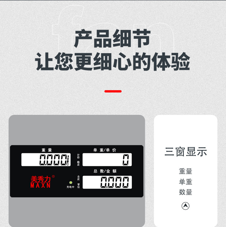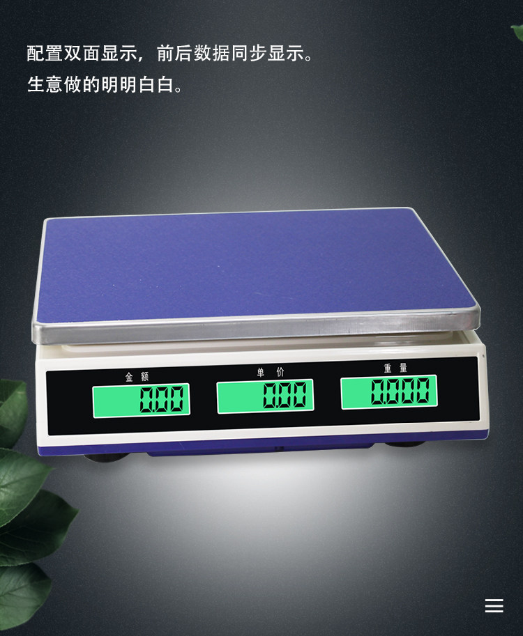 - (Модель зарядки+двухсторонний дисплей) Диапазон точности 30 кг 10G