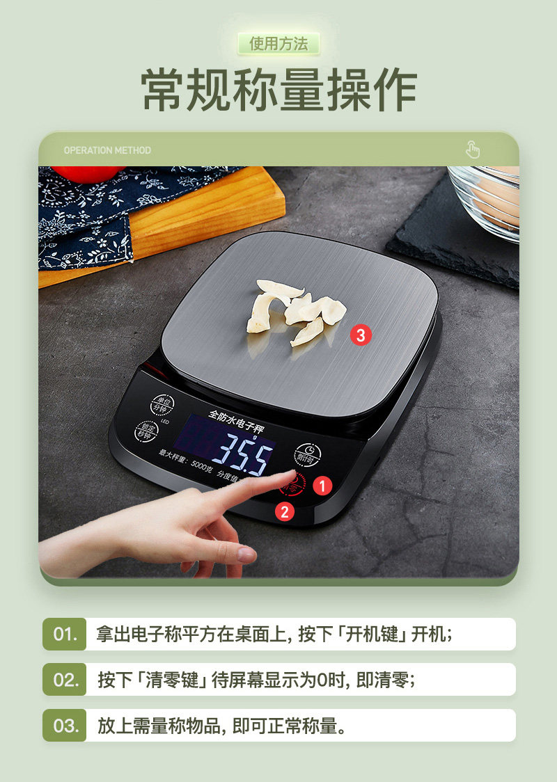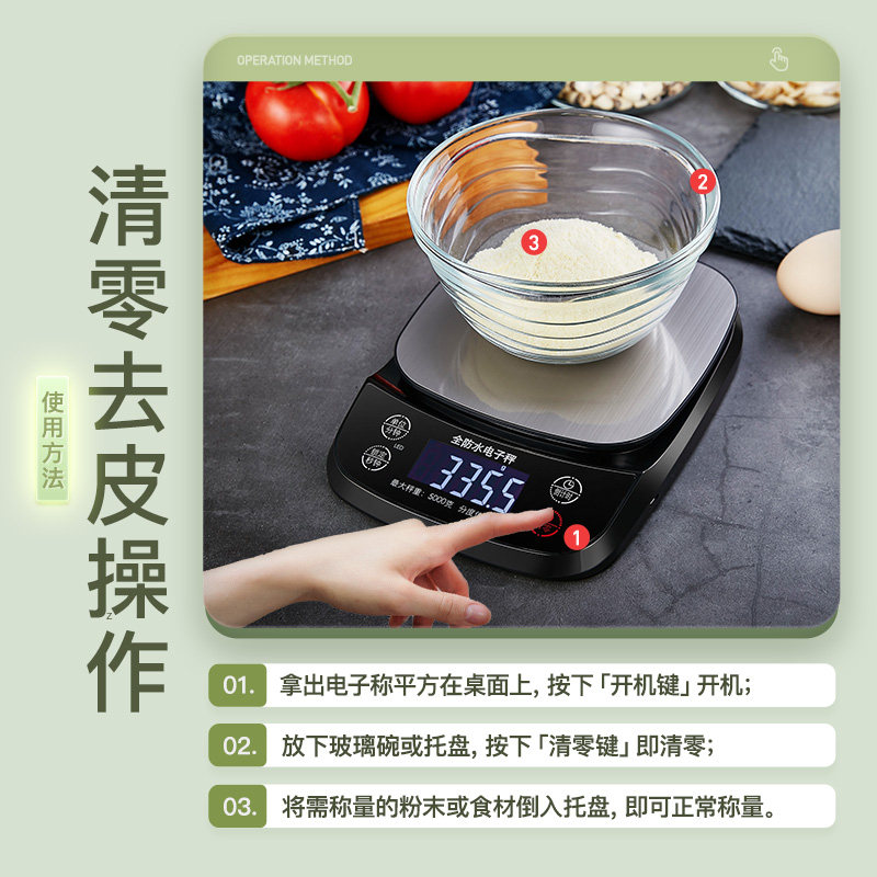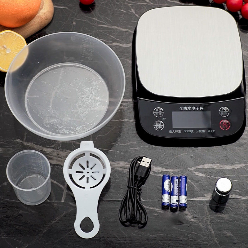 - Водонепроницаемые три -кг 3 кг /0,1 грамма+круглая чаша+砝 全+зарядная кабель+Человек -чашка