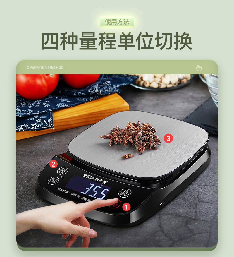 - Полностью водонепроницаемая 3 -сантиметровая модель 5 кг /0,1 грамма+круглая чаша+砝 全+зарядная кабель+измерительная чашка