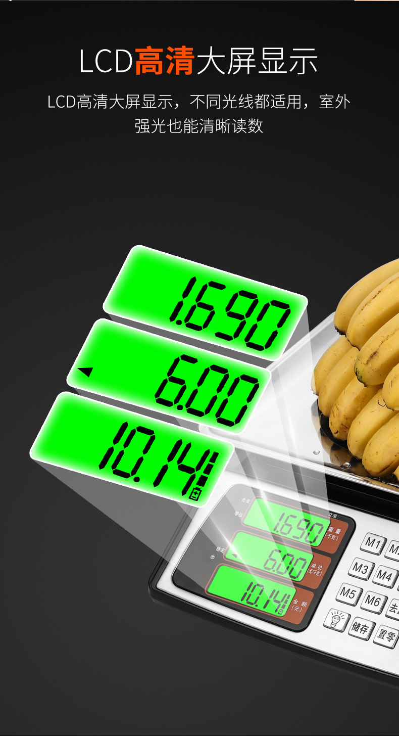 - [Водонепроницаемая все -сталовая сталь] 30 кг ЖК -дисплей черного типа вогнутая пластина (обновление срока службы аккумулятора лития)