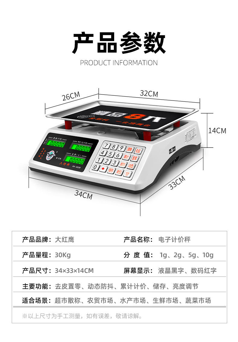 Большой красный орл Электронный Шкала Коммерческий малый точный электронный расчет продажи 30 кг овощных семейных кухонных водонепроницаемых шкал