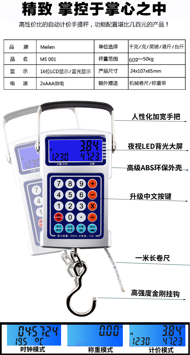 50 кг многофункционального электронного расчета ручки расчеты крючков/висящий/экспресс -называемый багаж