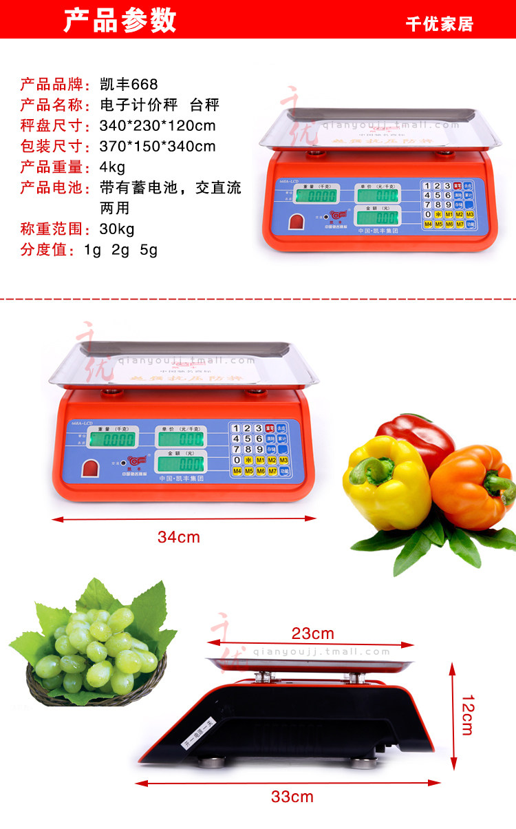 凯丰 Электронные таблицы масштабируются электронная ценовая шкала, продавая овощи и электронные масштабы, расчет фруктов. Электроника 30 кг