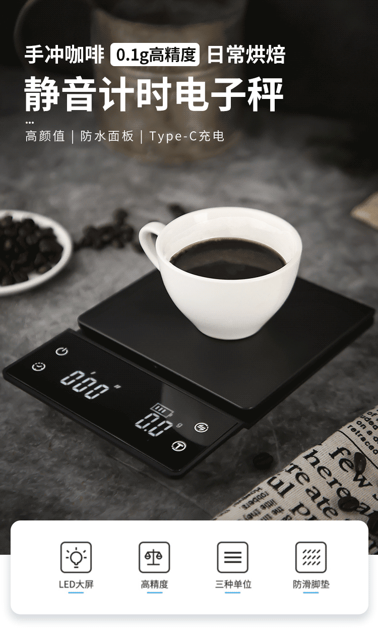 Водонепроницаемые высокоточные кофейные точные электронные весы с зарядкой