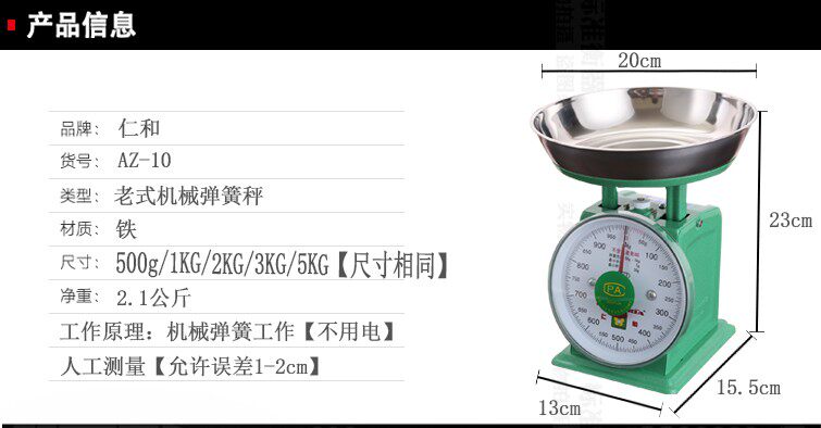 Подлинный вьетнамский бренд Renhe Spring Scale 1kg2kg3kg5kg Измерение механической кухонной шкалы небольшая пища