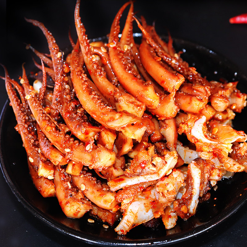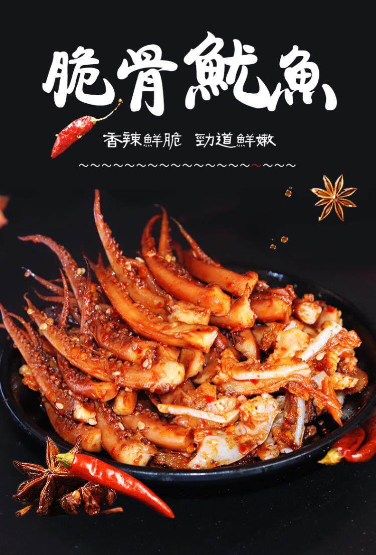 Острый мгновенный кальмар, пряный аромат, аромат, шелк кальмара, маленькая упаковка закуски с закусками морепродуктов.
