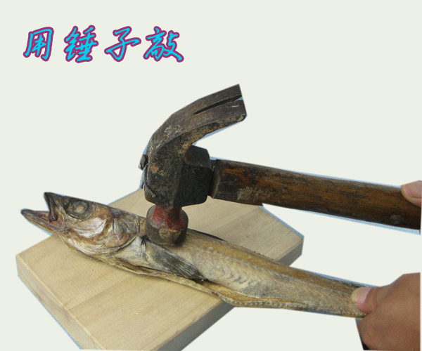 Первый способ поесть: одна рука с рыбой и одним молотком одной рукой.Просто осторожно стучите молотком.Постучайте с начала до конца, затем постучайте с конца до начала.Если кости удалены, очистите, вы можете съесть его напрямую.