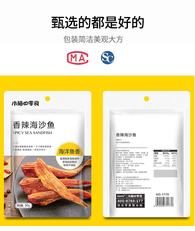 小梅的零食 Пряная рыба с морским песком 50 г*1 сумка - Сяоюган Хунан Специальные закуски, ароматные пряные закуски