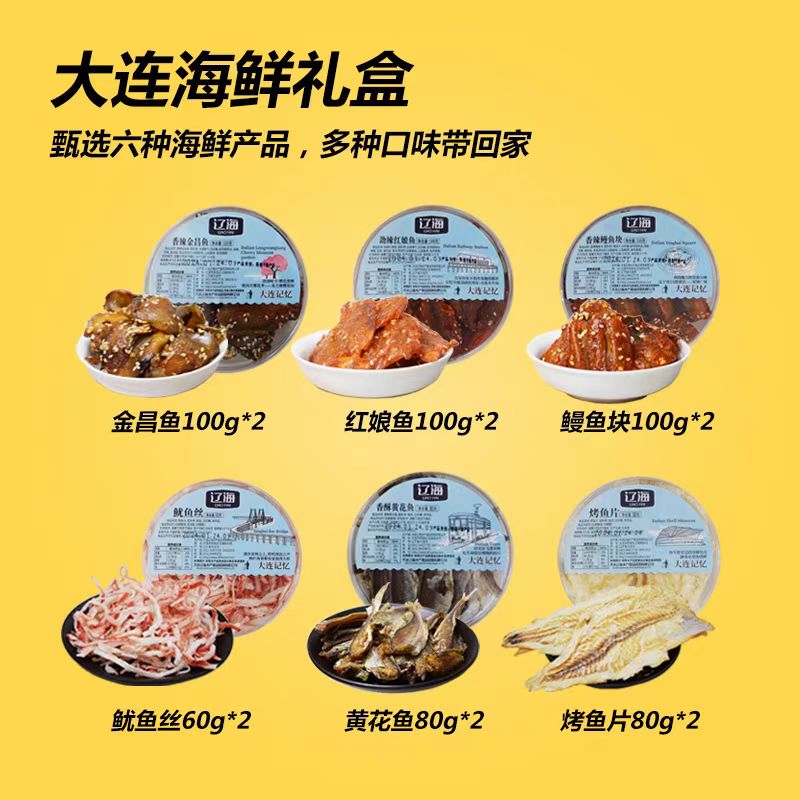 Подарочная коробка с закусками из морепродуктов Daliance Specialty Liaosi Group Dired Комбинация, чтобы дать людям подарки подарки, чтобы съесть кусочки рыбы на гриле кальмара
